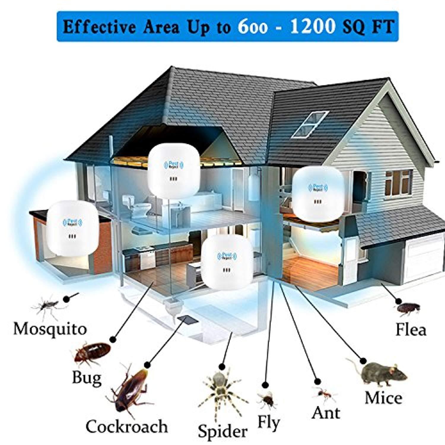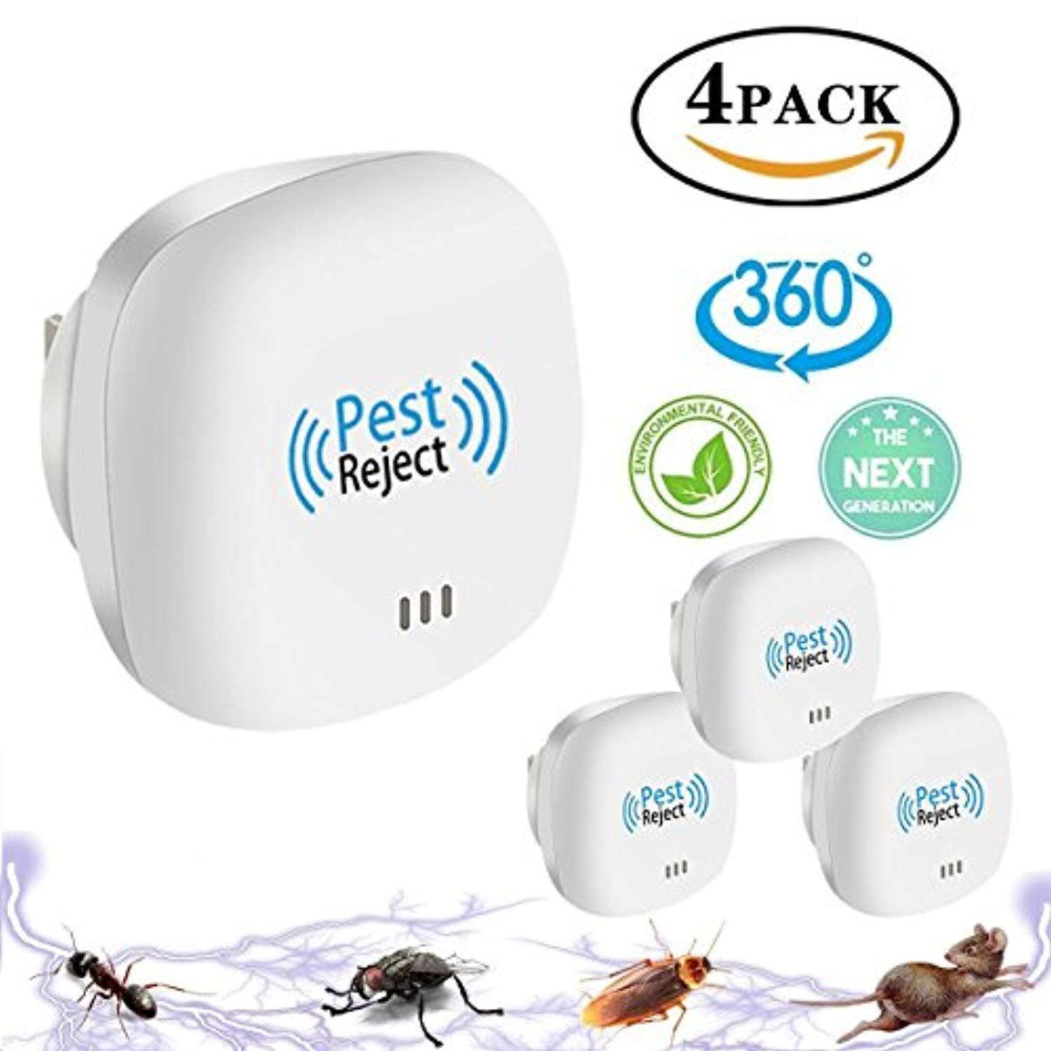 Tomu Ultrasonic Pest Repeller for Bugs and Insects, Mice Repellent to Repel and Prevent Mouse, Ant, Mosquito, Spider, Rodent, Roach,Child and Pets Safe Control(4 New Packs)