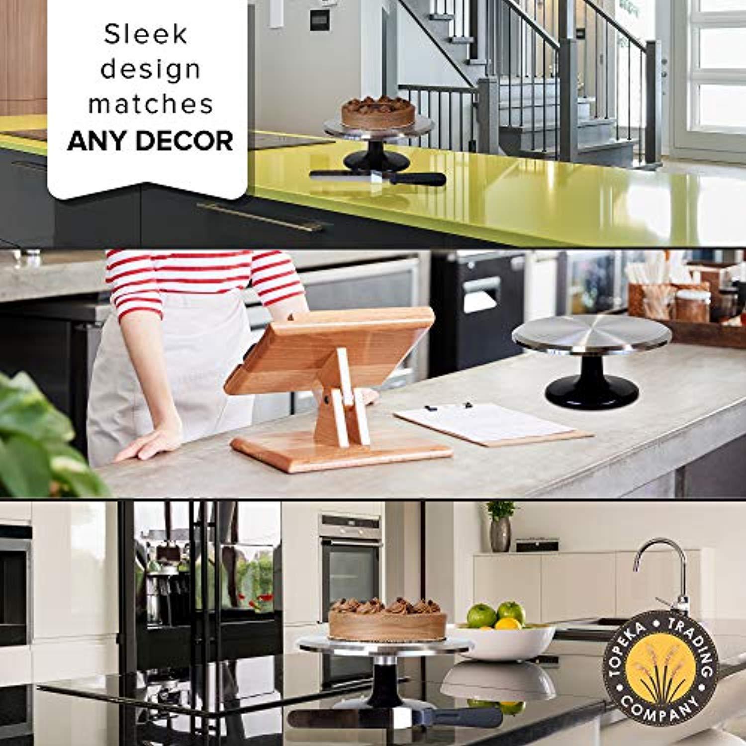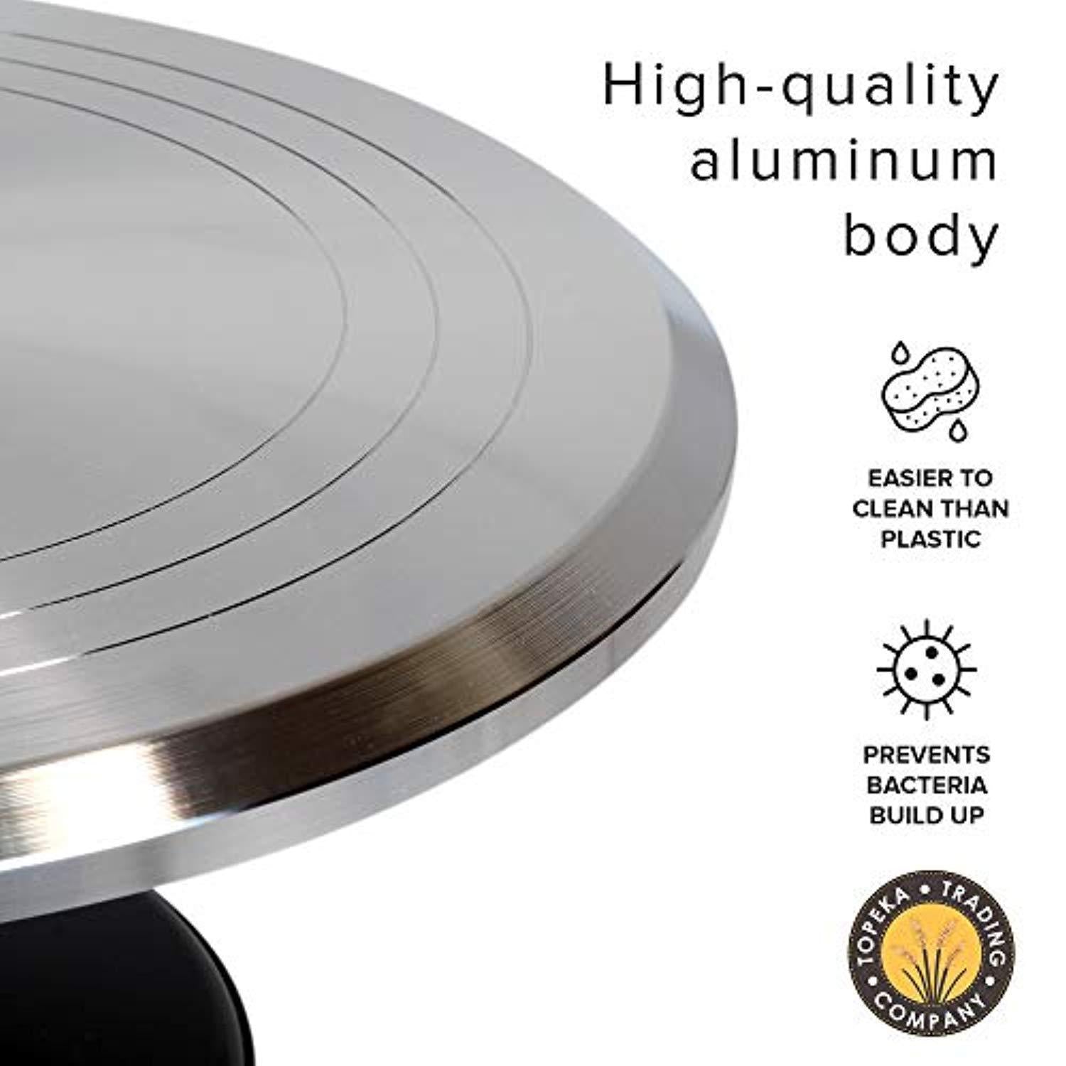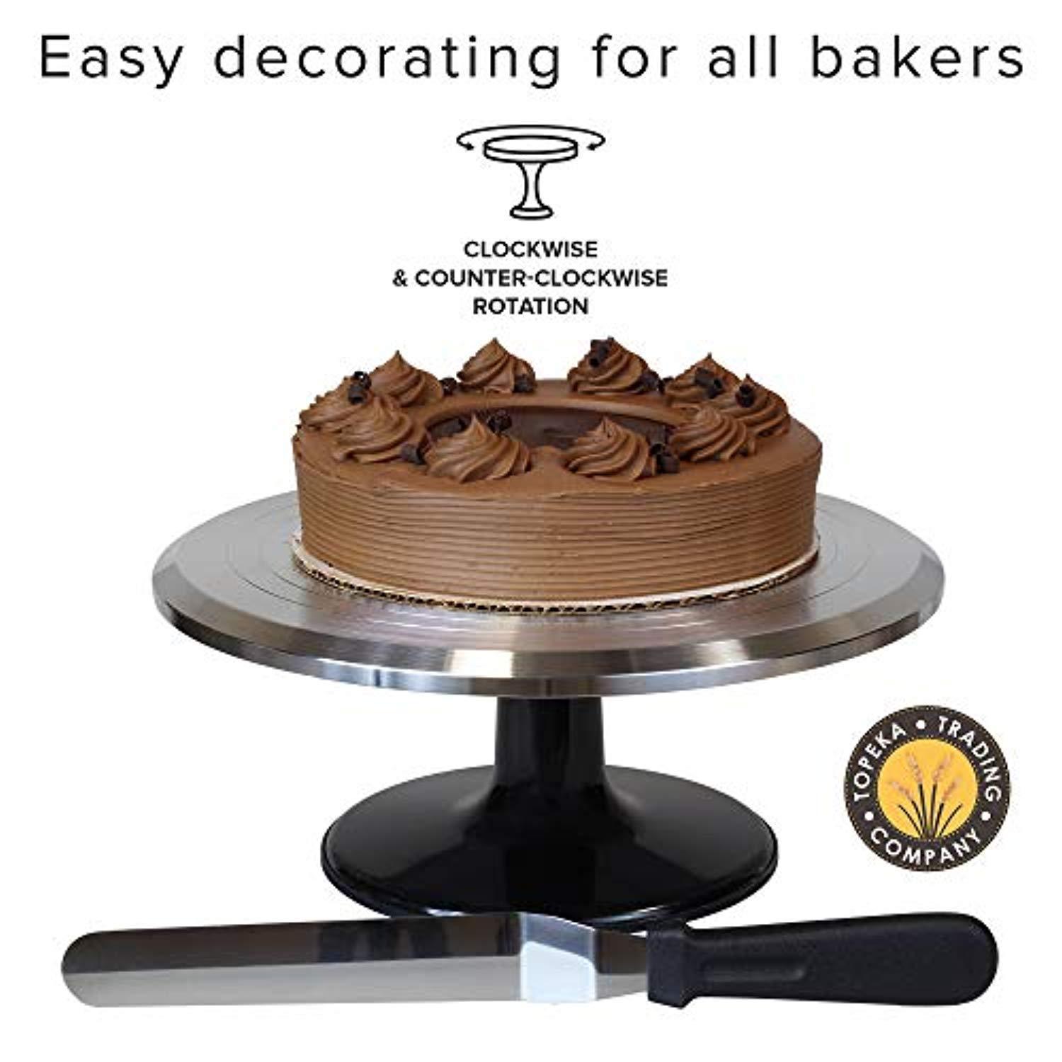 Topeka Trading Company Rotating Cake Decorating Turntable With Bonus Icing Spatula | 12" Diameter Aluminum Alloy Stand With Platform | Non-Slip Base & Smooth Rotation (Silver/Black)