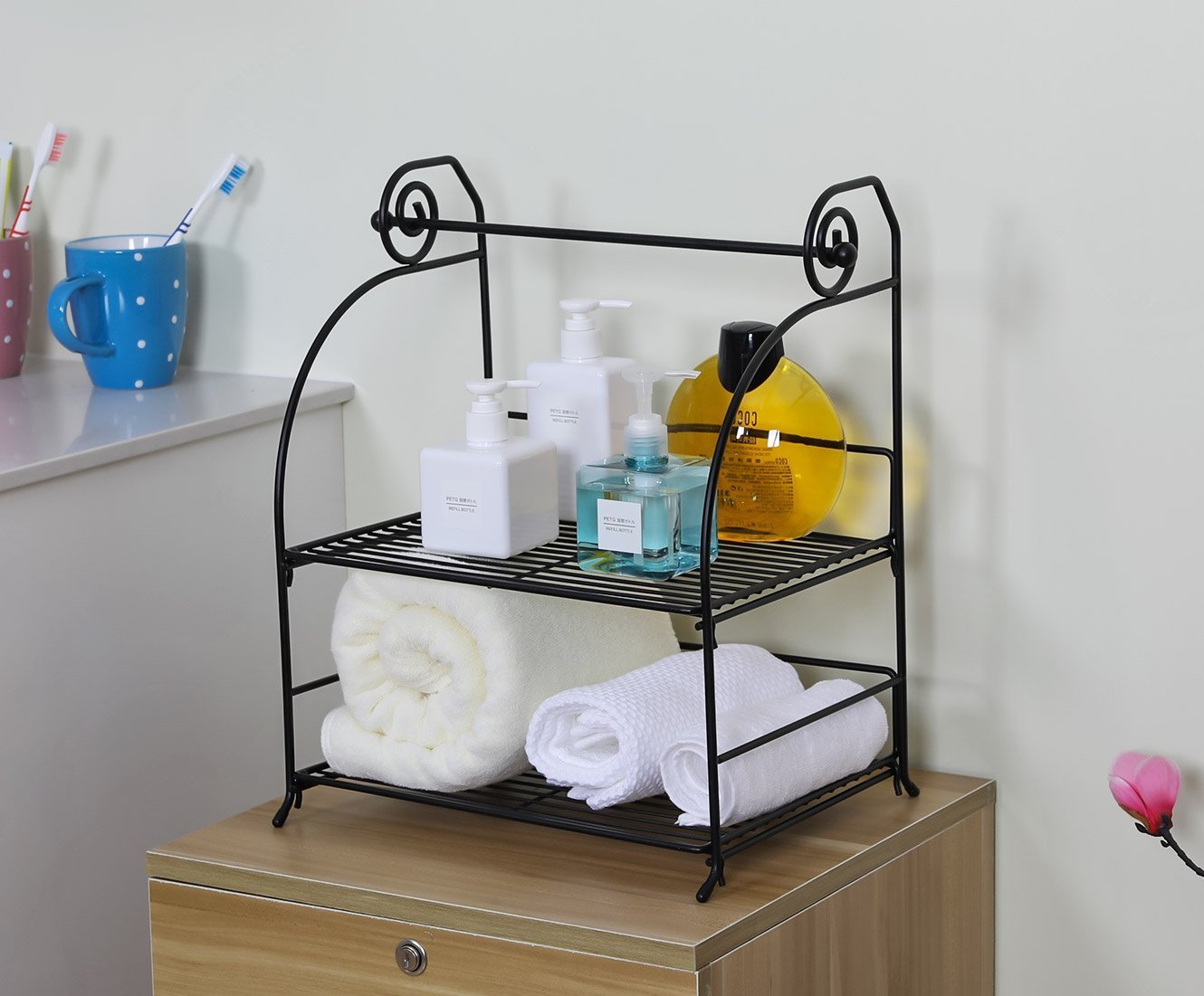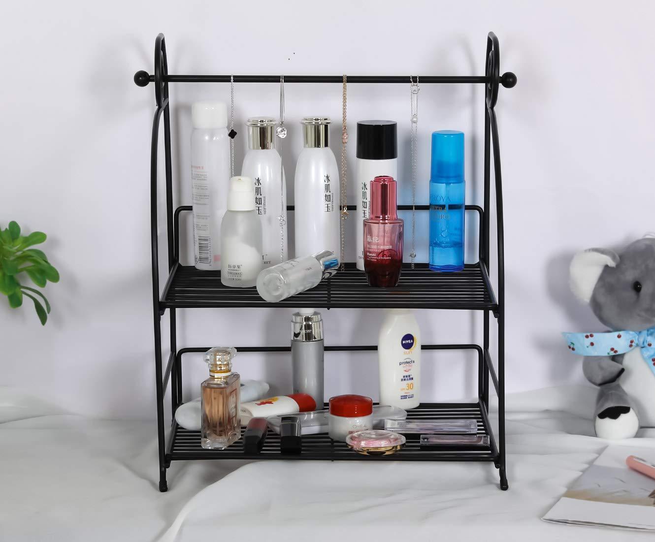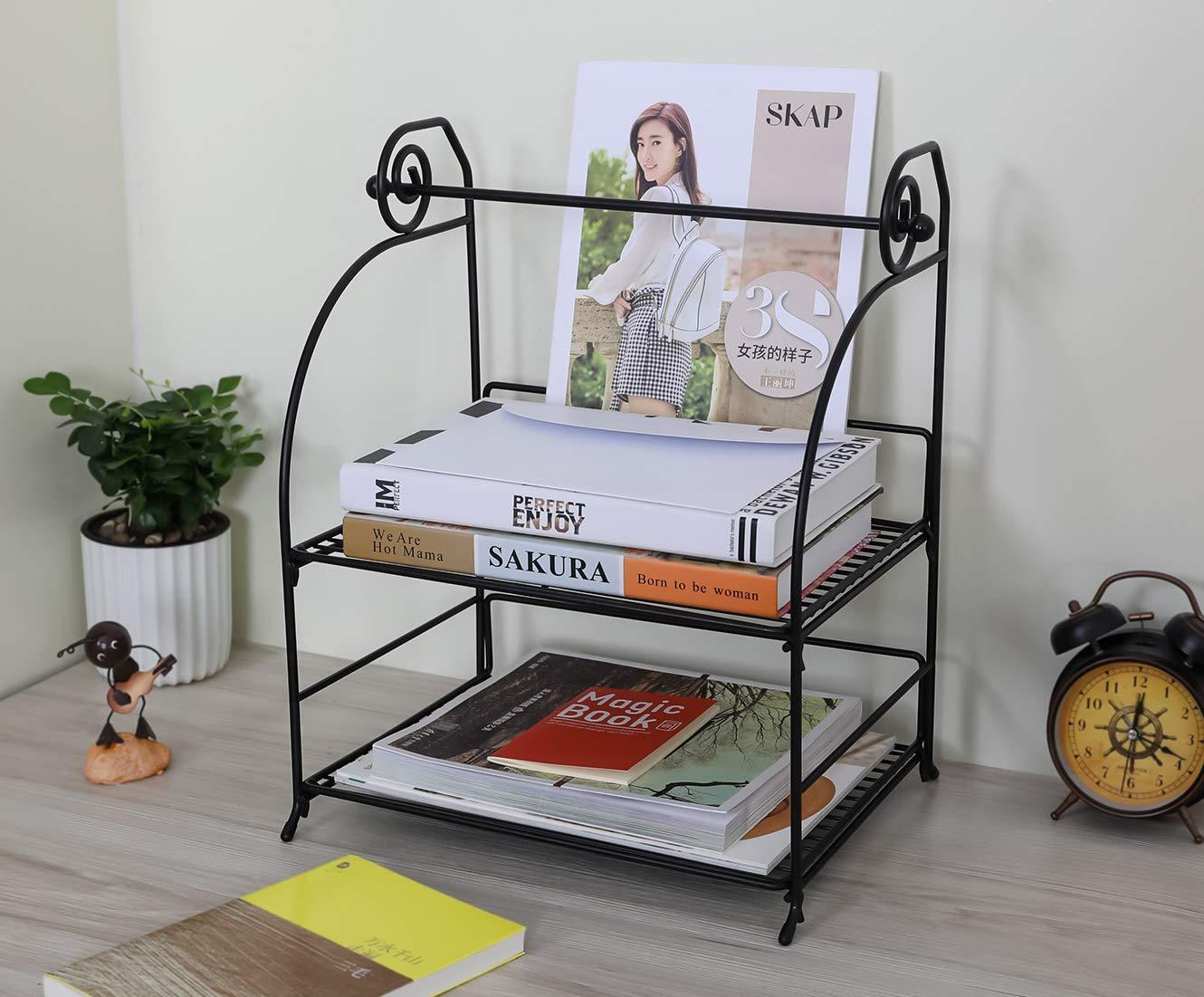 TQVAI 2 Tier Can Rack Spice Jar Storage Organizer with Kitchen Roll Holder, Black