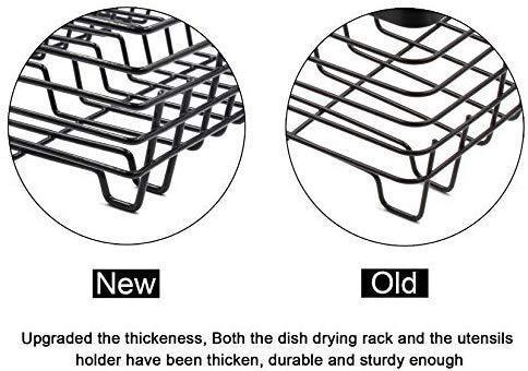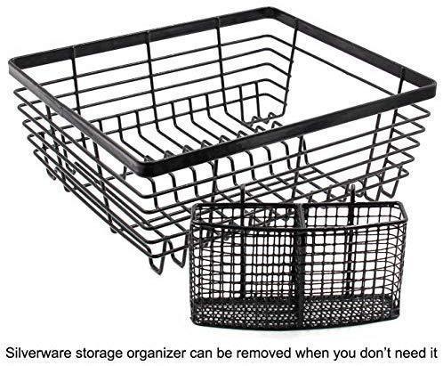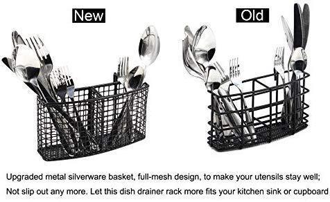 TQVAI Kitchen Dish Drainer Drying Rack with Full-Mesh Silverware Storage Basket, Black