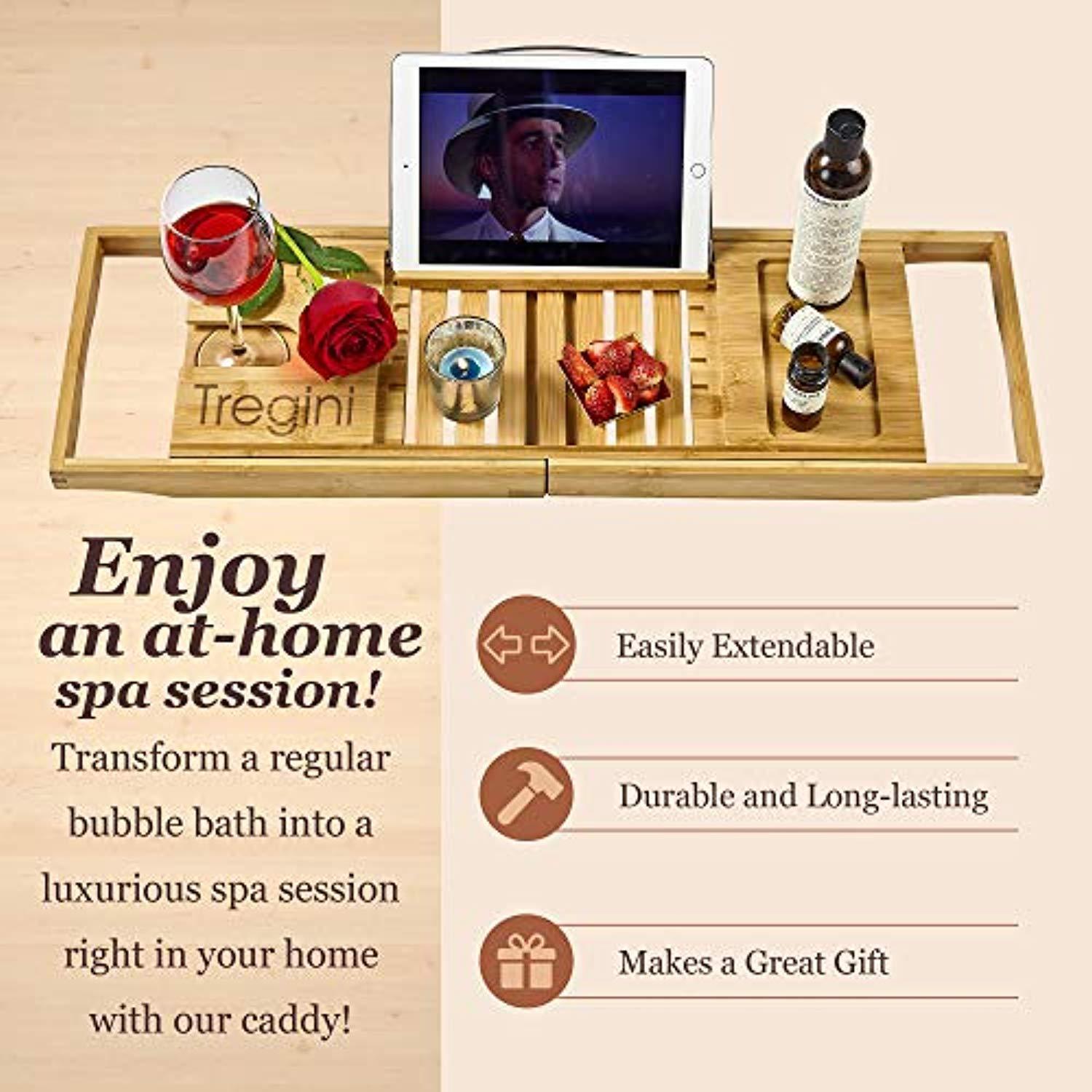PERSONAL SPA IN YOUR OWN HOME: Transform a regular bubble bath into a luxurious spa session right in your home with this luxury bathtub caddy so you can comfortably enjoy a book, movie, wine and more!