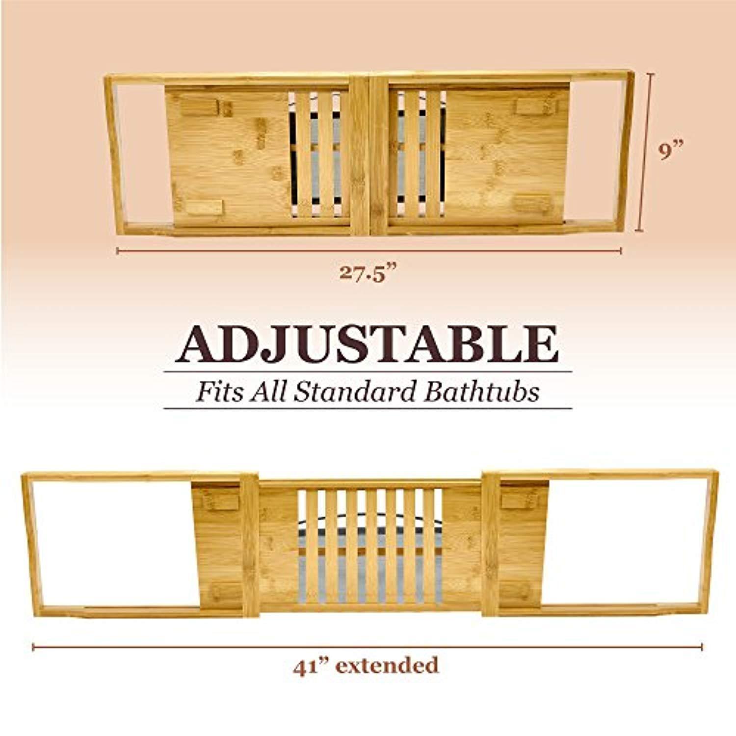 CONVENIENTLY EXTENDABLE: This tray extends from 27.5” to 41” and is universally compatible with most bath tubs. Just pull along the sides as far as you need to get to the perfect size to relax comfortably.