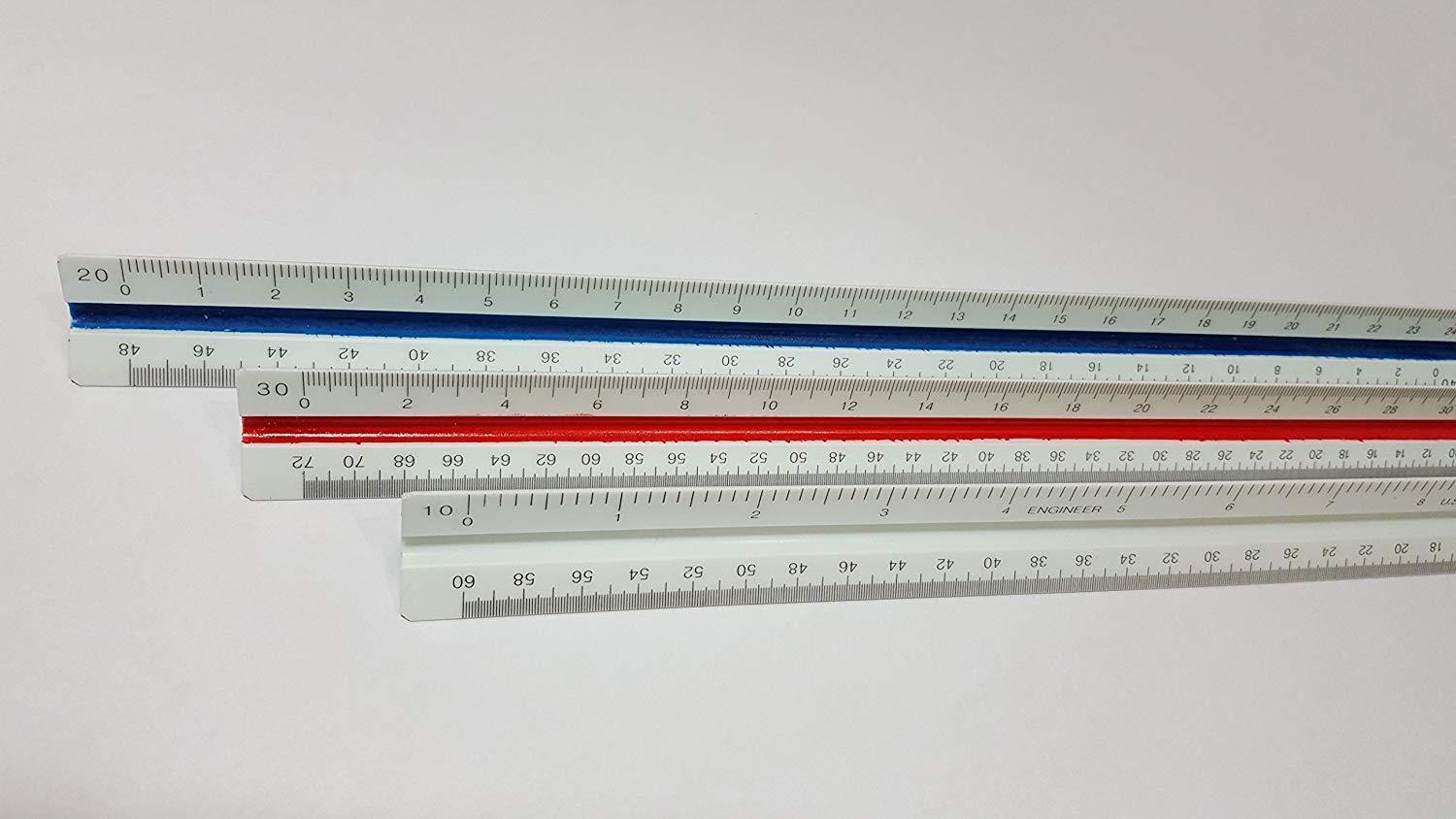 Triangular Engineering Scale Ruler by Ferocious Viking with Color-Coded Grooves with Fractions of an inch 1:10, 1:20, 1:30, 1:40, 1:50, 1:60