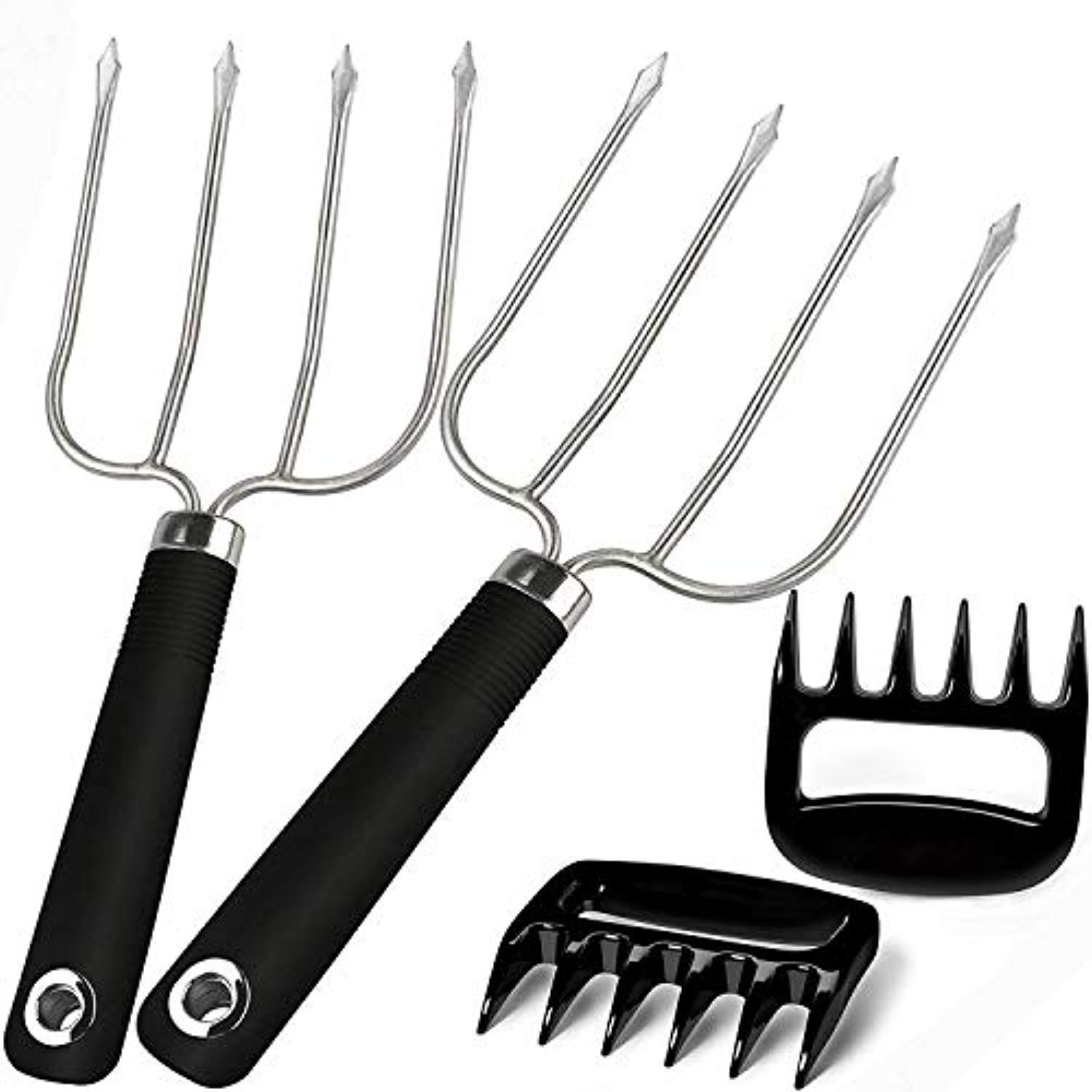 Turkey Lifting Forks, Meat Claws, Strong Endurance Stainless Steel Poultry Chicken Fork, Ultra-Sharp Roast Ham Forks. Easily Lift, Handle Meats - Essential for BBQ & Thanksgiving Pros, Set of 4
