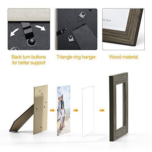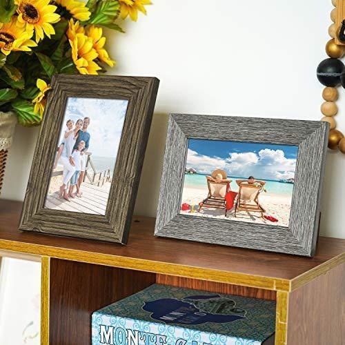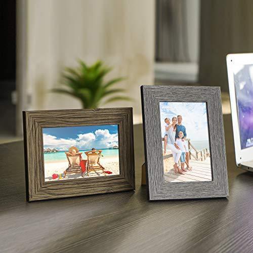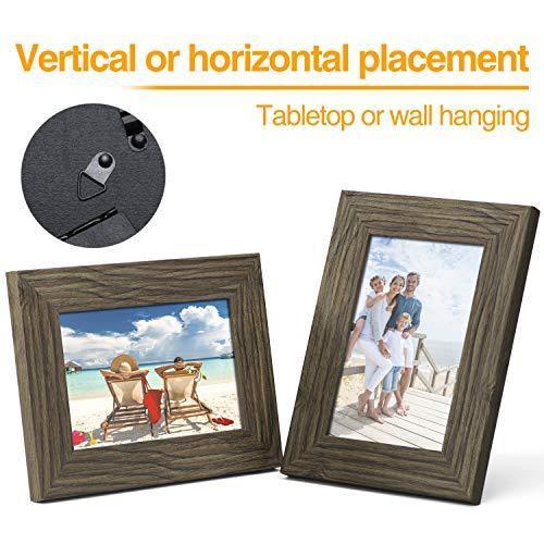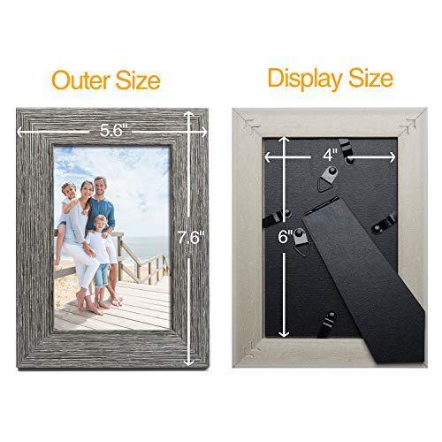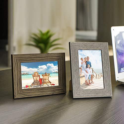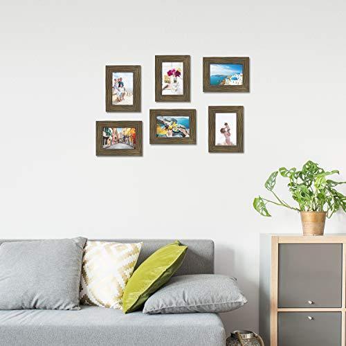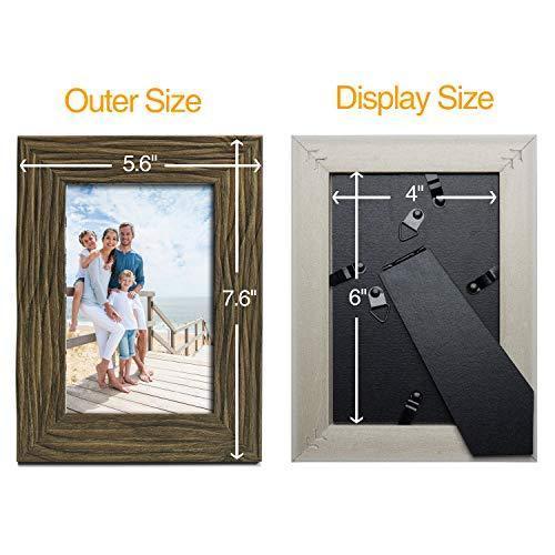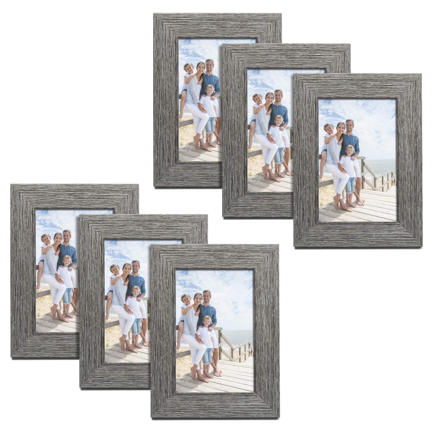 TWING Picture Frames Wood Pattern 4x6 High Definition Glass Tabletop or Wall Rustic Photo Frame for Table Top and Wall Display,Log Stripe Photo Frames,6 Pack (Light&Brown)