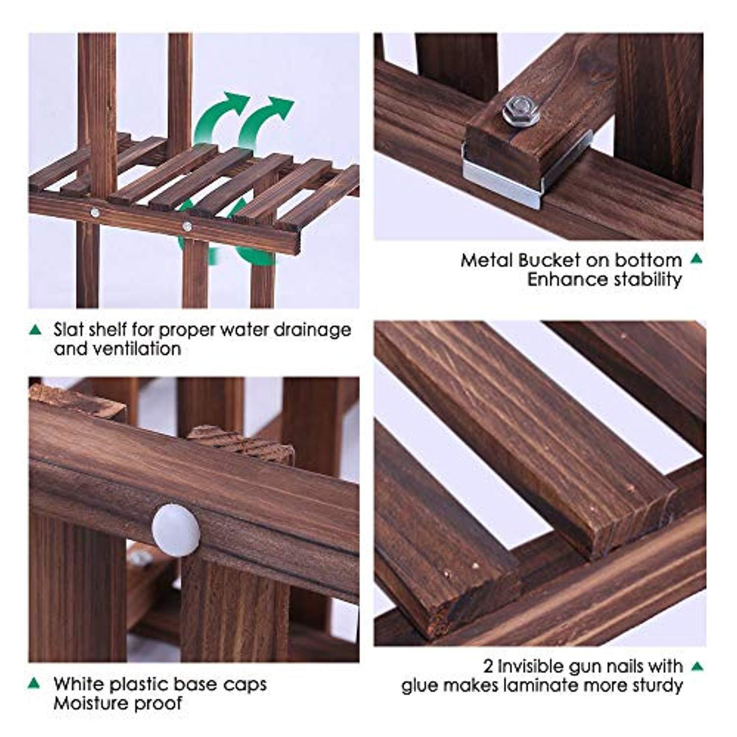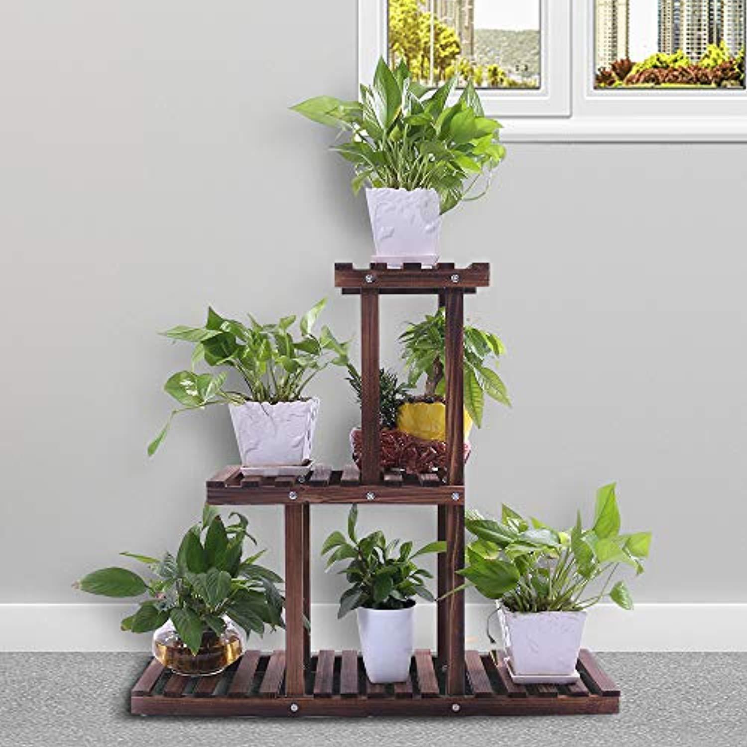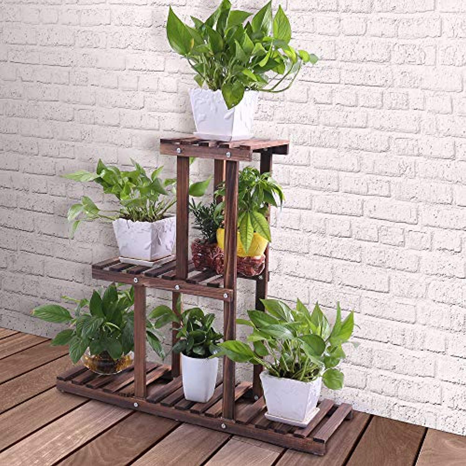 Ufine Wood Plant Stand Outdoor Indoor 3 Tier Vertical Carbonized Multiple Planter Holder Flower Ladder Stair Shelf Garden Balcony Patio Corner Pot Display Storage Rack (Space SavingLight Weight)