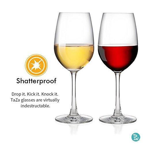 International products have separate terms, are sold from abroad and may differ from local products, including fit, age ratings, and language of product, labeling or instructions. PREVENT PARTY DRAMA with shatterproof wine glasses. TaZa wine glasses won't break if dropped, leaving you free to enjoy company without the worry of breakage. Perfect for outdoor picnics & camping and around the pool, patio, or boat. Anywhere that you do not want broken glass! ENTERTAIN IN STYLE with crystal clear 100% TRITAN plastic glasses that provide the brilliance of a fine glass. Theres no need to sacrifice practicality for claritybe prepared to receive compliments on how well they showcase wine, cocktails or any other drink you serve.