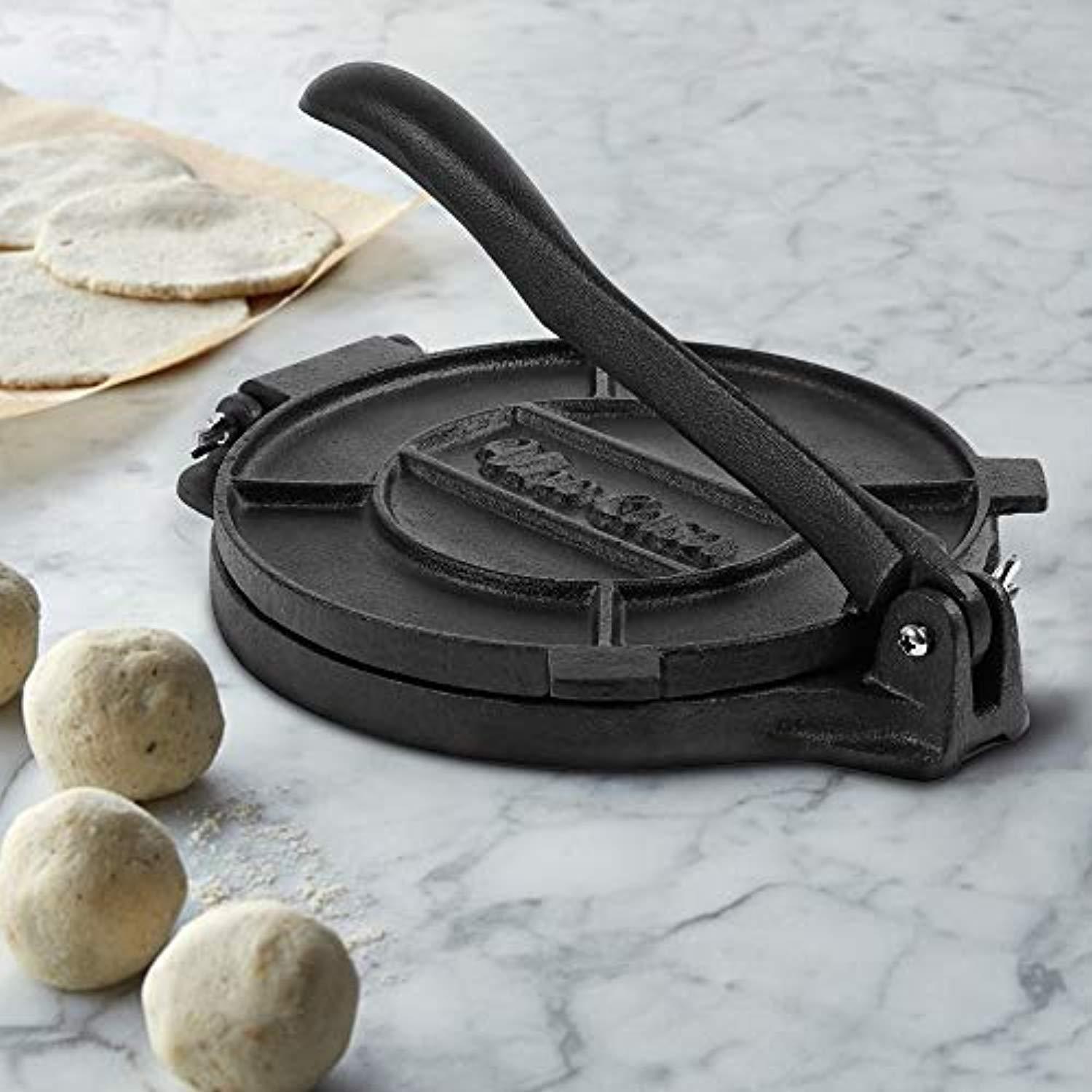 Uno Casa Cast Iron Tortilla Press, Pre-Seasoned, 8 Inch, Bonus 100 Pcs Parchment Paper