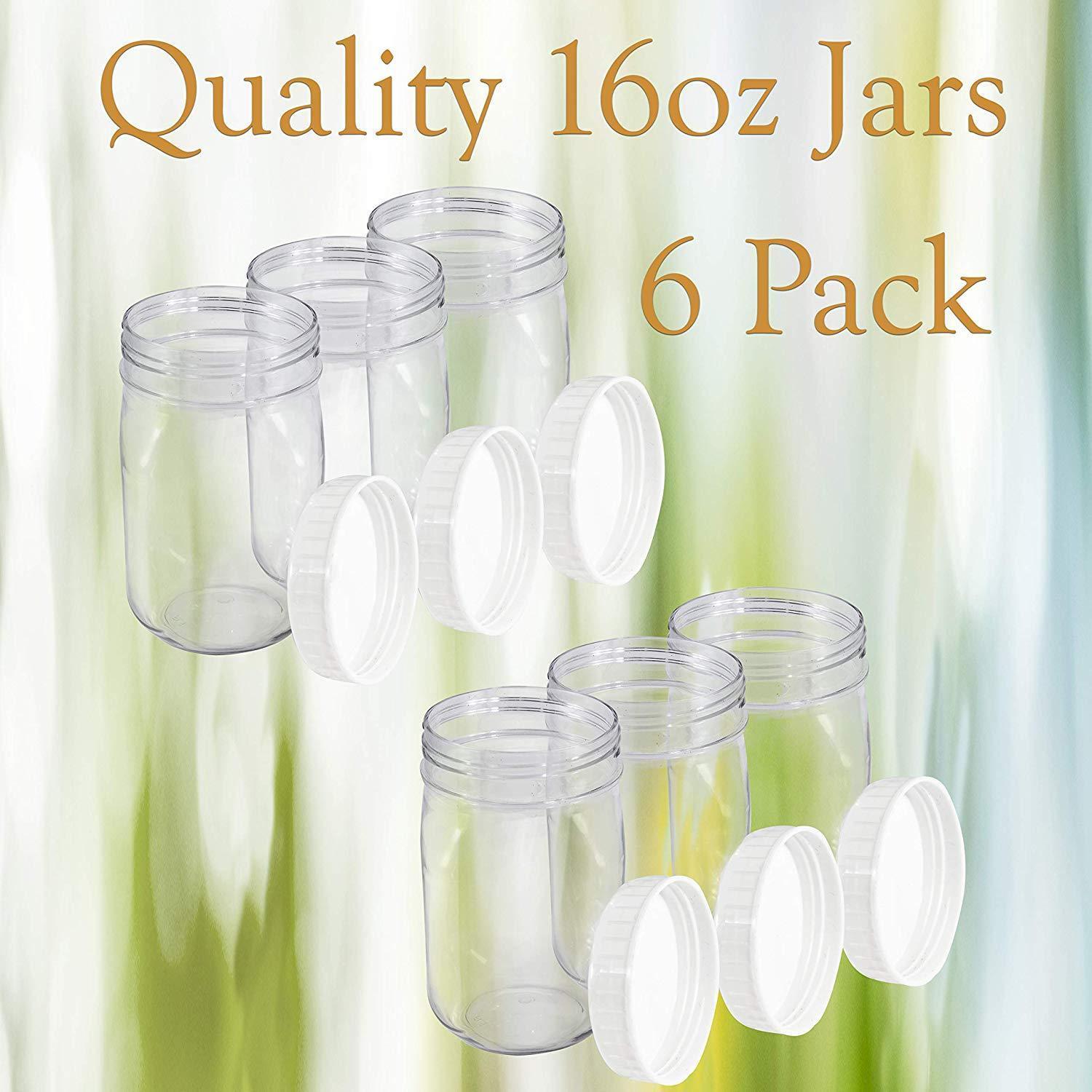 Upper Midland Products 16 oz Clear Plastic Jars 6 Pack Screw on Lids Wide Mouth BPA Free Storage Containers