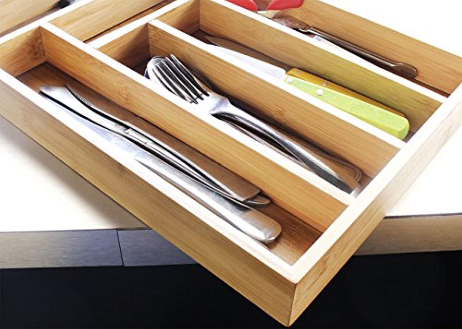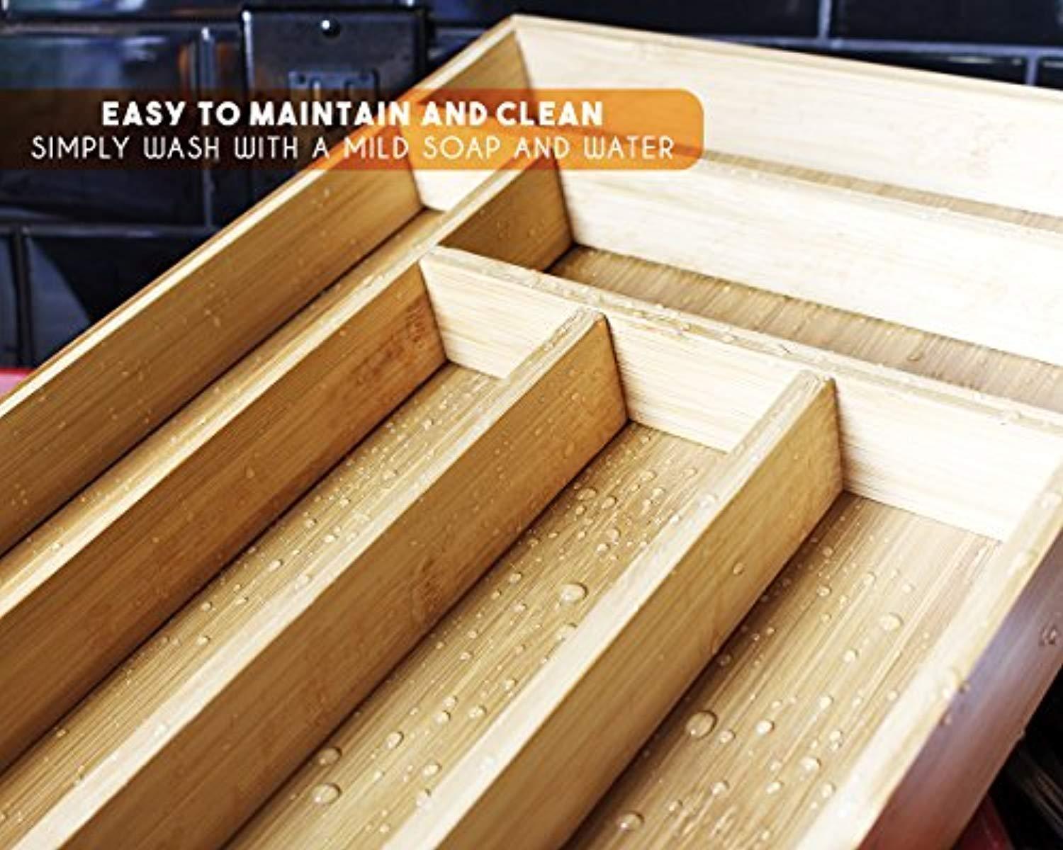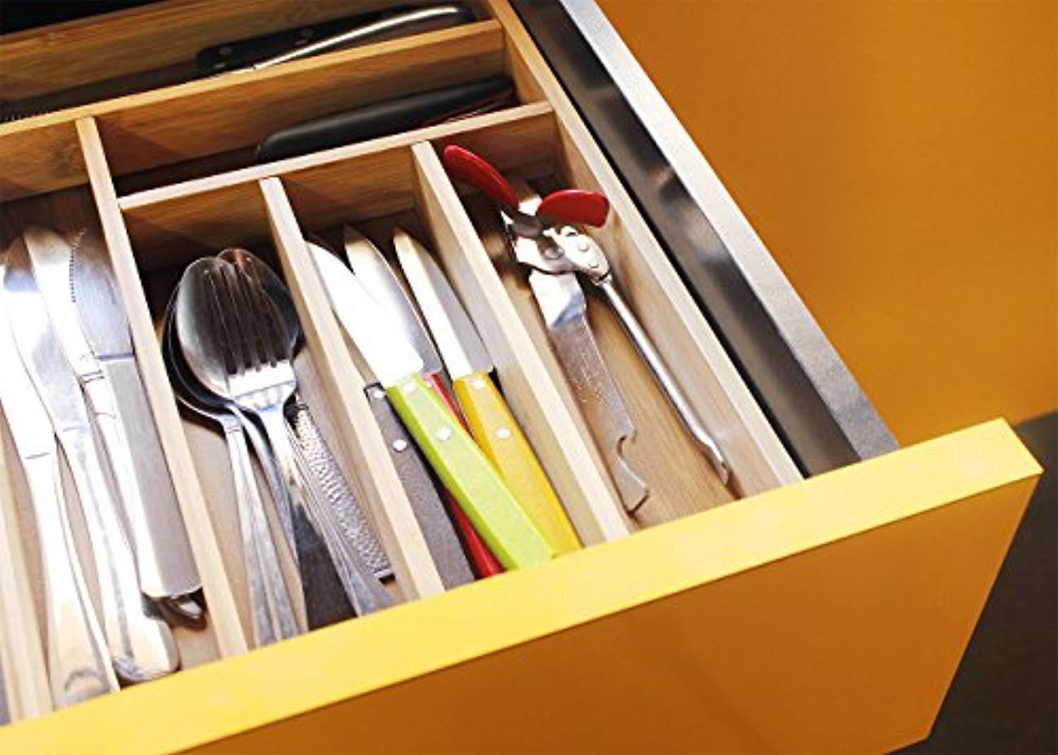 Utensil Drawer Organizer - Bamboo Drawer Organizer - 6 Slot Silverware Drawer Dividers - Forks, Knives, Spoons, Flatware Tray, 14.5 x 10.25 x 1.75 Inches