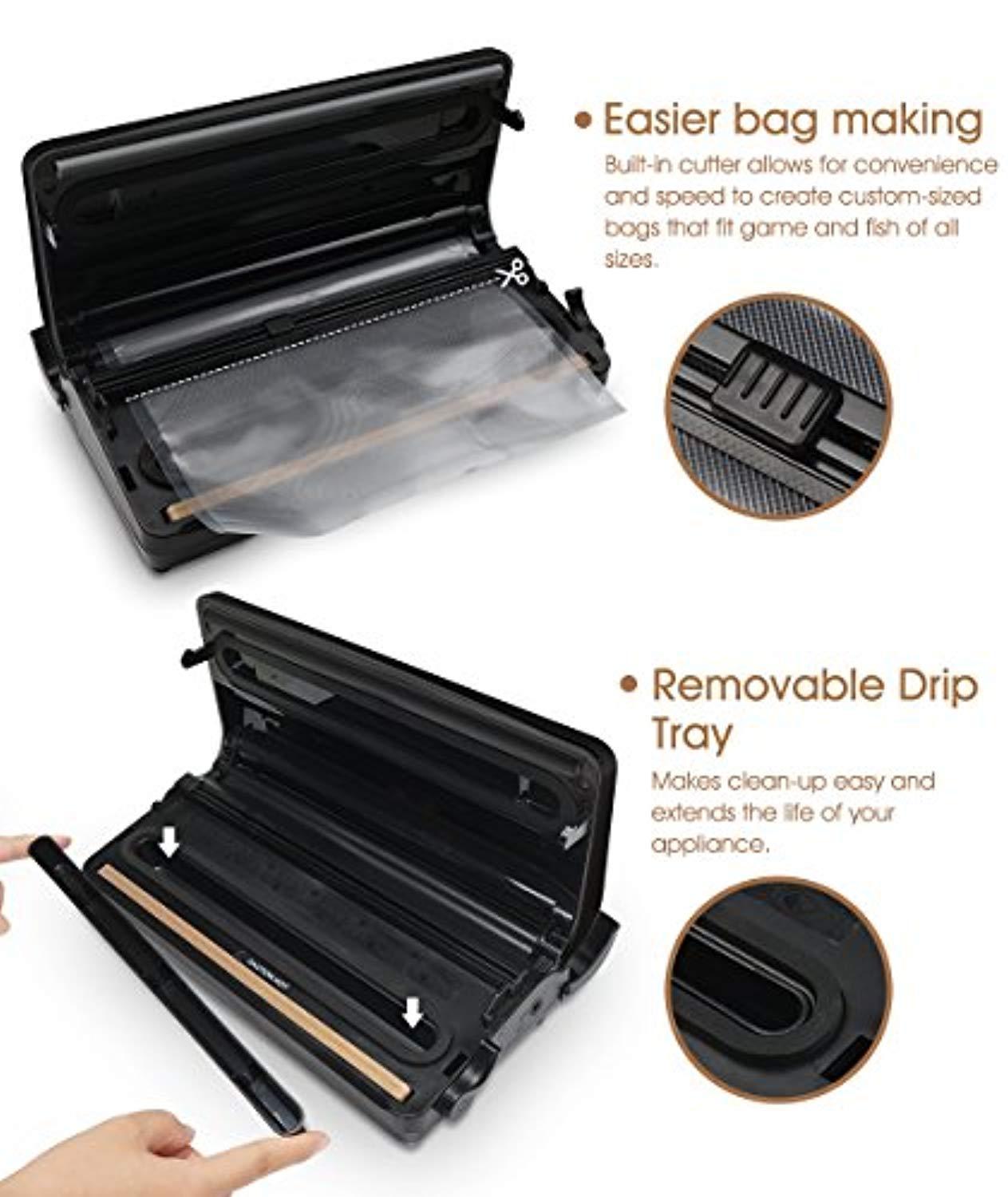 Vacuum Sealer, Mooka 4-in-1 Sealing System with Cutter, 10 Sealing Bags (FDA-Certified), Multi-use Vacuum Packing Machine and Pumping Hose, Dry & Moist Food Mode for Food Preservation (TVS-2150)