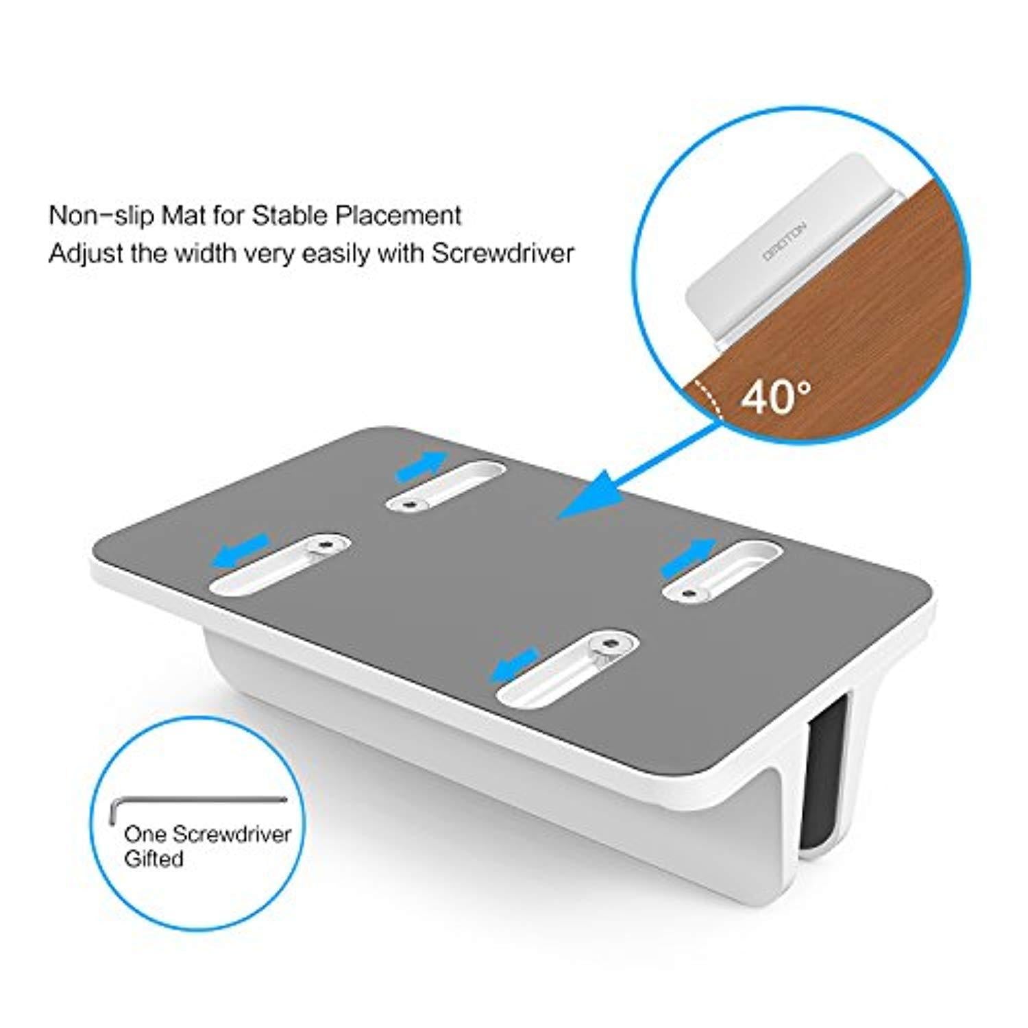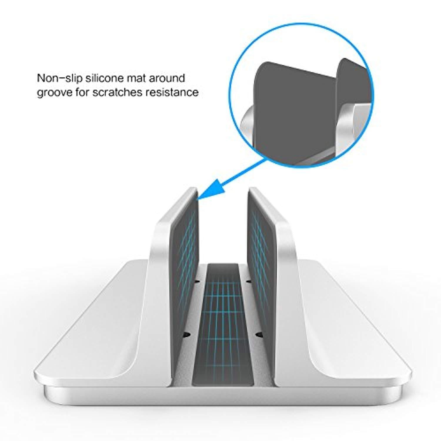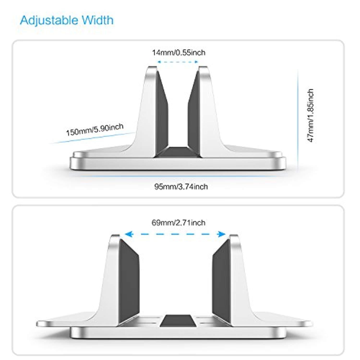 Vertical Laptop Stand [Adjustable Size], OMOTON Desktop Aluminum MacBook Stand with Adjustable Dock Size, Fits All MacBook, Surface, Chromebook and Gaming Laptops (Up to 17.3 inch), Silver