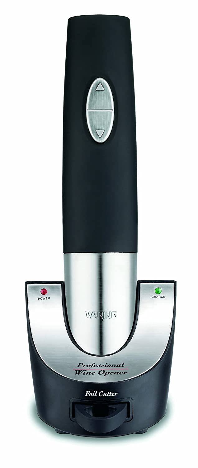 Brushed stainless accents and rubberized handset Removes up to 80 corks with one full charge; nimh battery pack and charging base included Removes synthetic corks with ease Includes foil cutter that stores in base and vacuum sealer to preserve flavor and freshness of unfinished wine Limited five year motor warranty