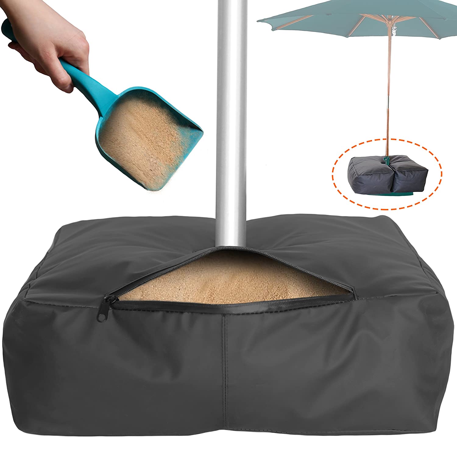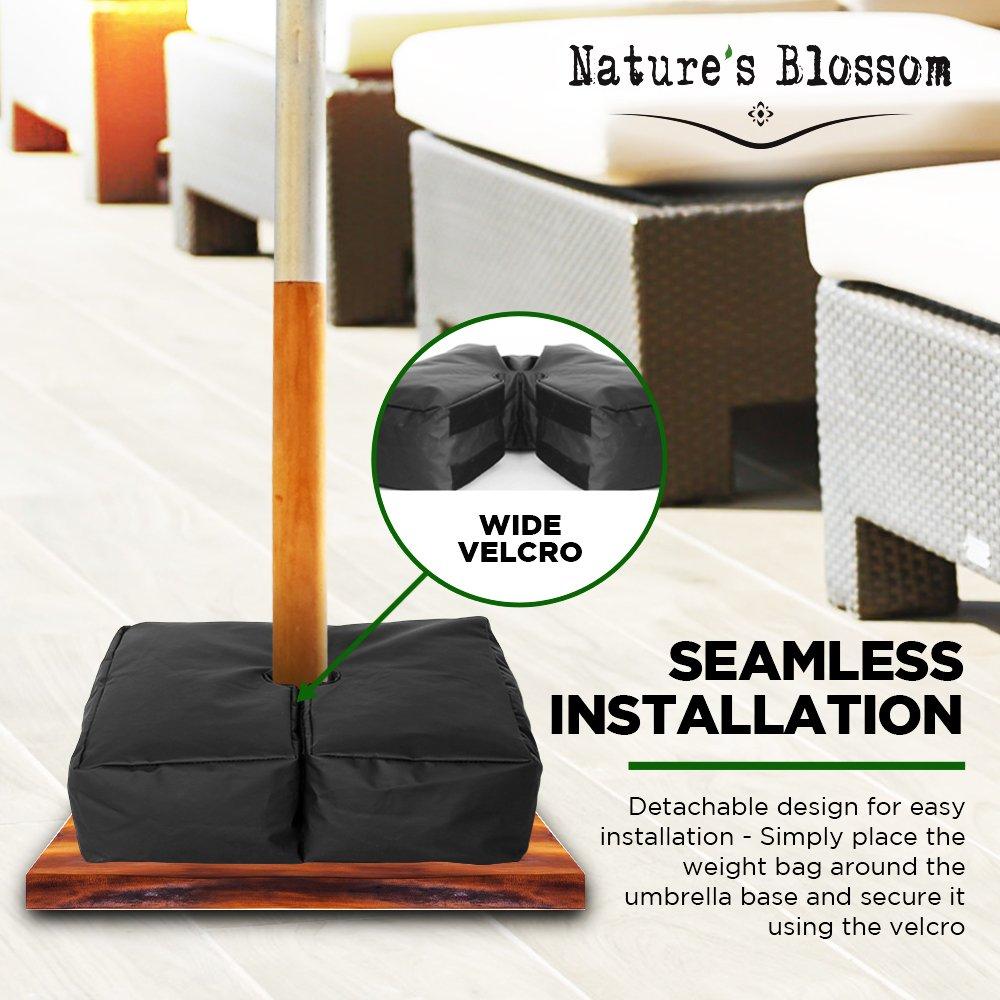 Nature's Blossom Weather Resistant Weights for Patio Umbrella Base - 19’’ Square. for Classic Outdoor Umbrellas, Hanging, Cantilever & Offset Models. Detachable Velcro - Easy Installation. XL Opening for Filling Sand