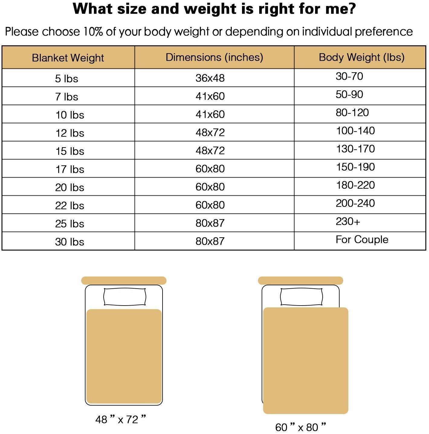 【WEIGHT&SIZE】Choosing a blanket based on each individual's need. Suggest 10-12% of your body weight. Recommend 48''x72'' for twin bed and 60''x80'' for queen bed. Notes: Pregnant women, babies and sick patients are prohibited to use. Ensuring that the weighted blanket user has enough strength to move the blanket off by themselves 【HASSLE-FREE 30-DAY MONEY BACK & 3-YEAR WARRANTY】Hand wash and flat dry. Do not dry clean, do not bleach, do not tumble dry. We stand behind our quality. If for any reason you are not entirely happy, CONTACT US DIRECTLY, we will replace or return your order, no question asked! Buy with 100% confidence