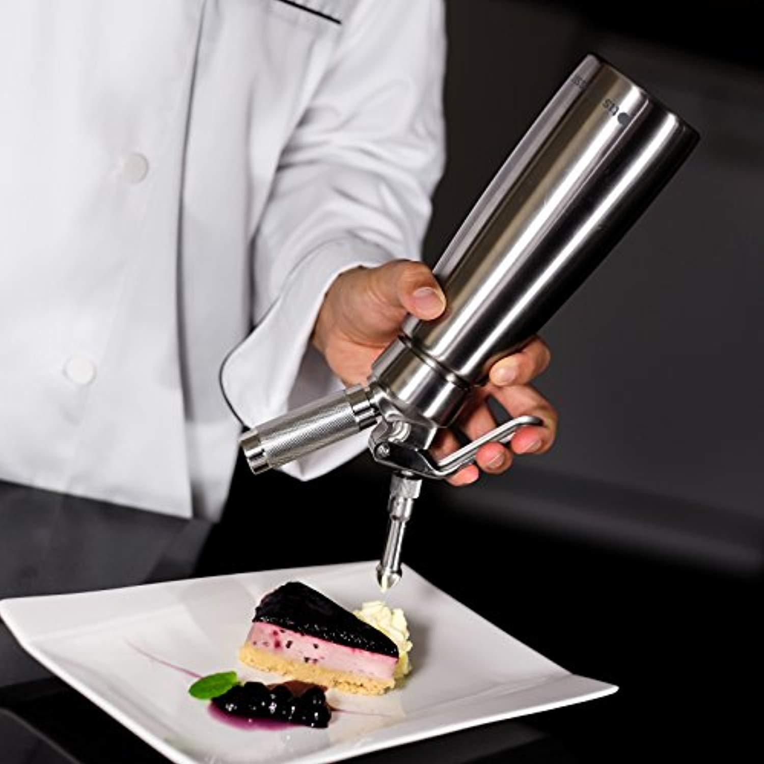 Whipped Cream Dispenser Stainless Steel - Professional Whipped Cream Maker - Gourmet Cream Whipper - Large 500ml / 1 Pint Capacity Canister - Includes 3 Culinary Decorating Nozzles by OTIS CLASSIC