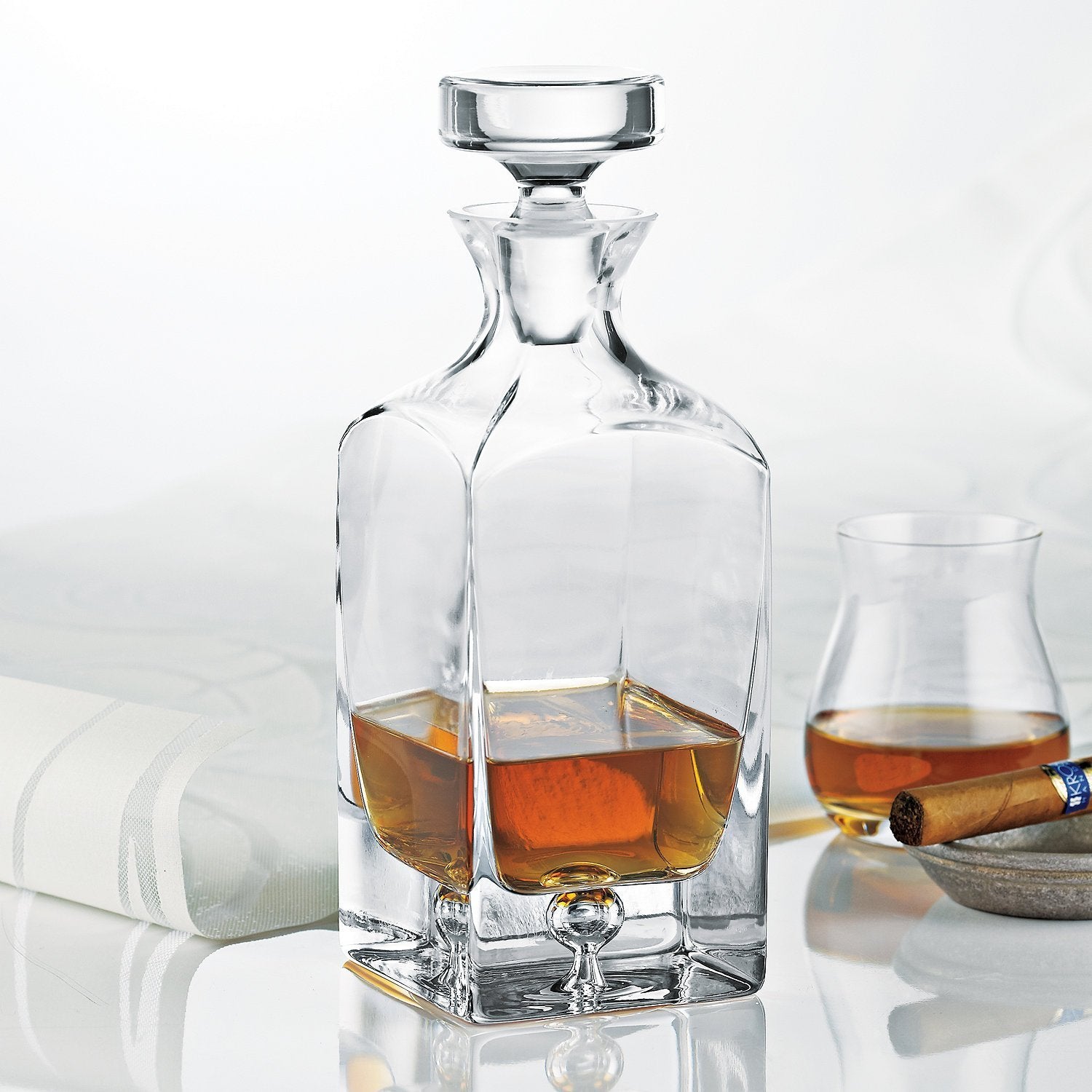 Lead-Free Crystal - Great for long term storage, this whisky decanter is mouth-blown from lead-free crystal and features a thick base with decorative bubble. Sheer Masculinity - A contemporary twist on a classic design, this decanter features a traditional rugged squared base with an included stopper. Not Just For Whiskey – Whether you’re entertaining guests or serving yourself your favorite single malt, spirits, or cordials, do so with elegance. Ideal For Gifting – The timeless design of the Lexington Whiskey Decanter has a refined ruggedness that makes it the perfect way to spoil your favorite whiskey lover. Maintenance – Dishwasher safe. Measures 10.25“H x 4" W.