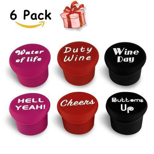Wine Stoppers, GDPETS 6 Pack Food Grade Silicone Reusable Leak-Proof Wine Bottle Stoppers Corks, Funny Beverages Bottles Air-Tight Seal Caps, Special Novelty Wine Gifts Accessories for Wine Lovers