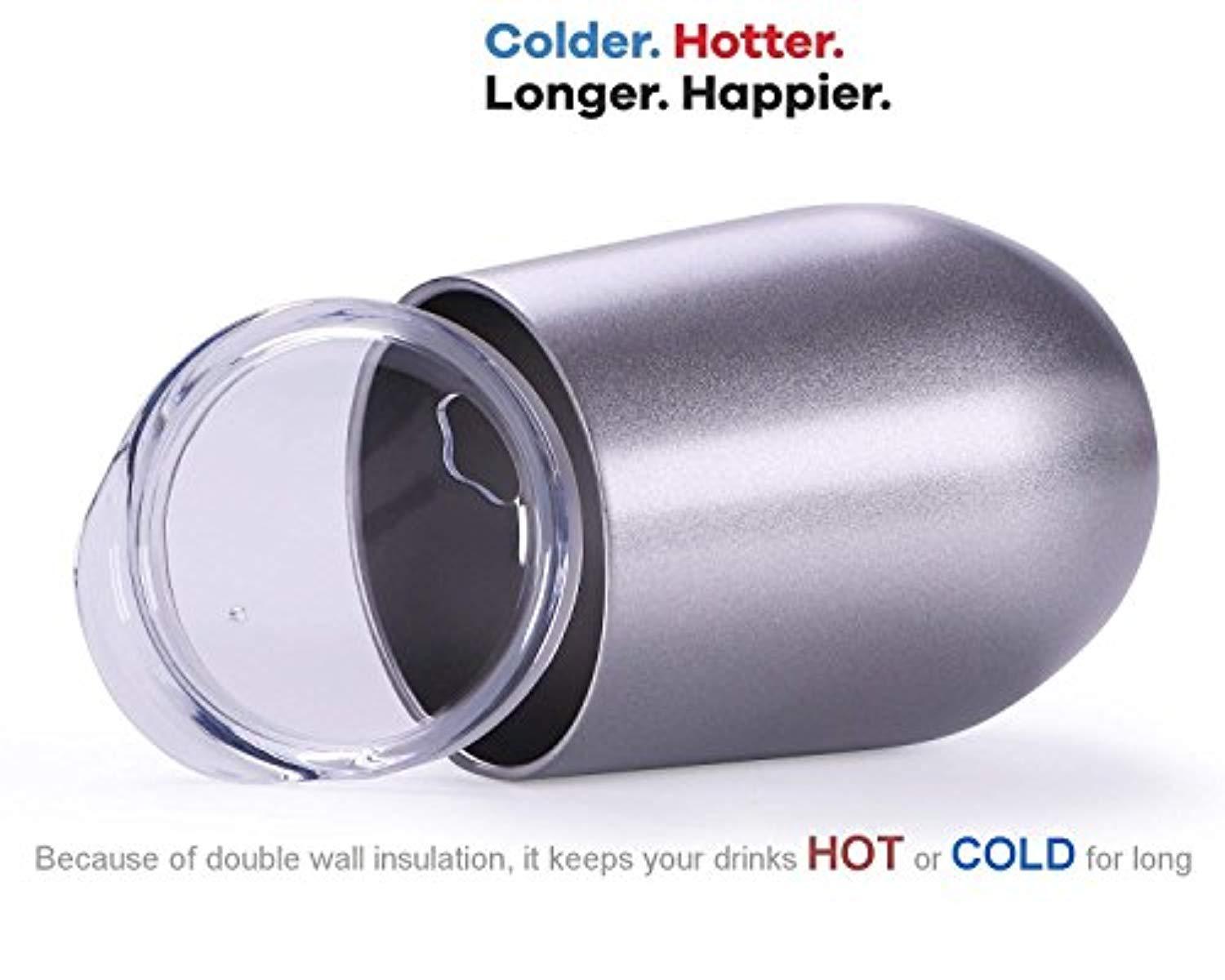 VACUUM INSULATED - KEEPS DRINKS HOT OR COLD LONGER : Double Walled Vacuum Insulation Keeps Your Drinks Warm or Cold for Longer Time. Made of advanced stemless glass technology to keep your drinks warm for a longer time in a cold day, providing you a warm winter. Stemless metal cups are ideal for coffee , Tea, Champagne , Cocktails