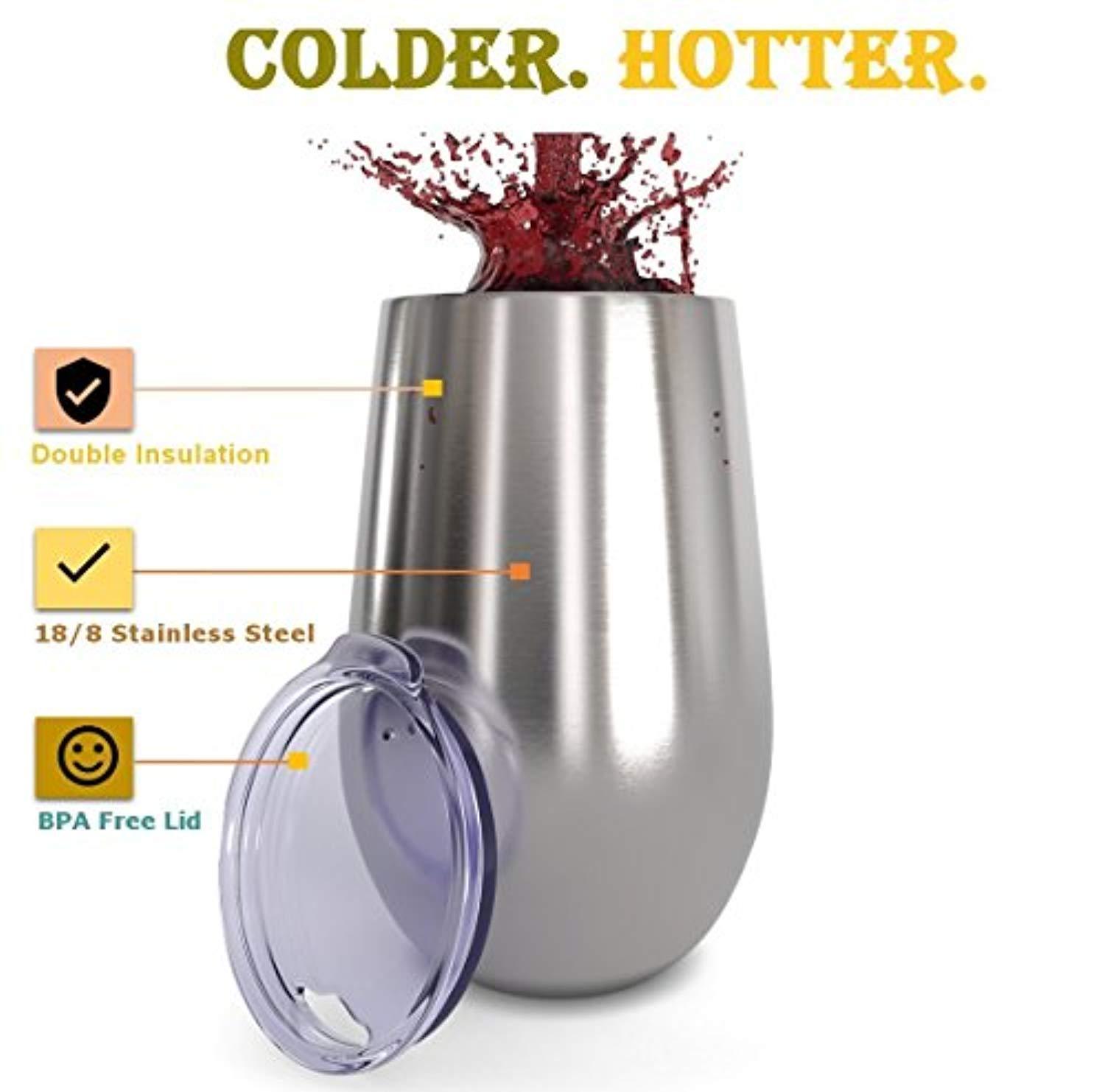 SAFE- FDA APPROVED: These insulated wine glass tumblers certified and Lids are BPA free. Designed with a straw hole for cup on the surface, which is good for easy sipping with straws and helping reduce splash.Clear lid fits perfectly fit with your tumbler, that it makes it easy to take it on the go.