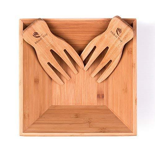 This BEAUTIFULLY DESIGNED BAMBOO BOWL will look great in your home, blending with formal and everyday table settings equally well. Included are a pair of servers that rest on the side of the bowl when not being used. Made of STURDY ECO-FRIENDLY BAMBOO, with a beautiful, golden grained pattern like wood, but a much more sustainable choice. Use to serve SALAD at dinner, hold CHIPS at your party or the big game, store FRUIT on the counter, or as a DECORATIVE PIECE on your Table Skirts ! 100% SATISFACTION GUARANTEED. Midori Way was founded by 2 moms who are passionate about our families and preserving our environment. We’re also passionate about delivering a great customer experience to YOU.