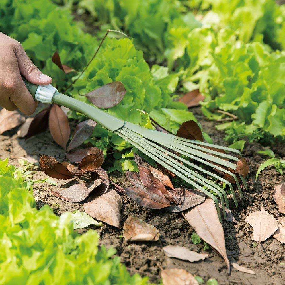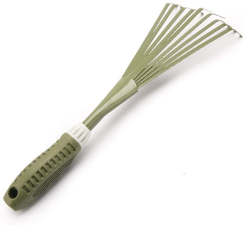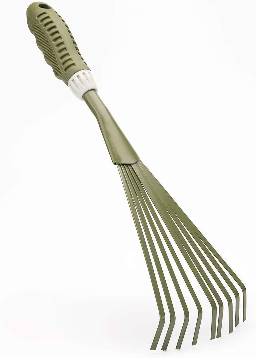 Worth Garden Powder Coating Carbon Steel Hand 9-Teeth Broom & Rake Tool with Ergonomic Soft PVC Grip