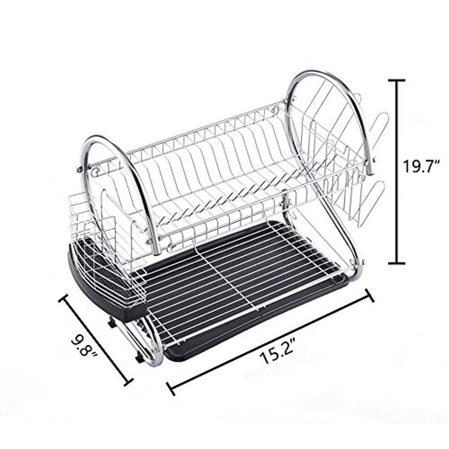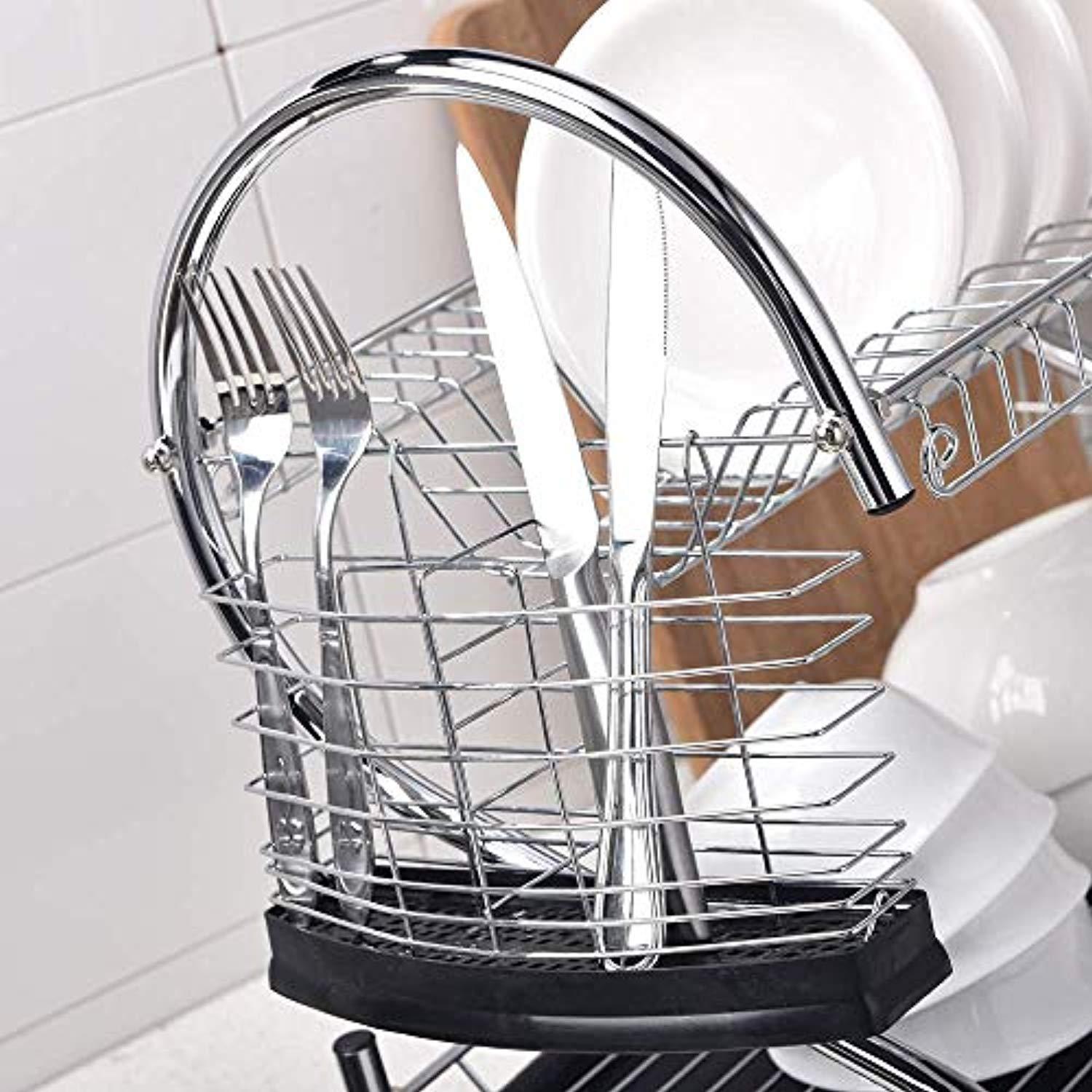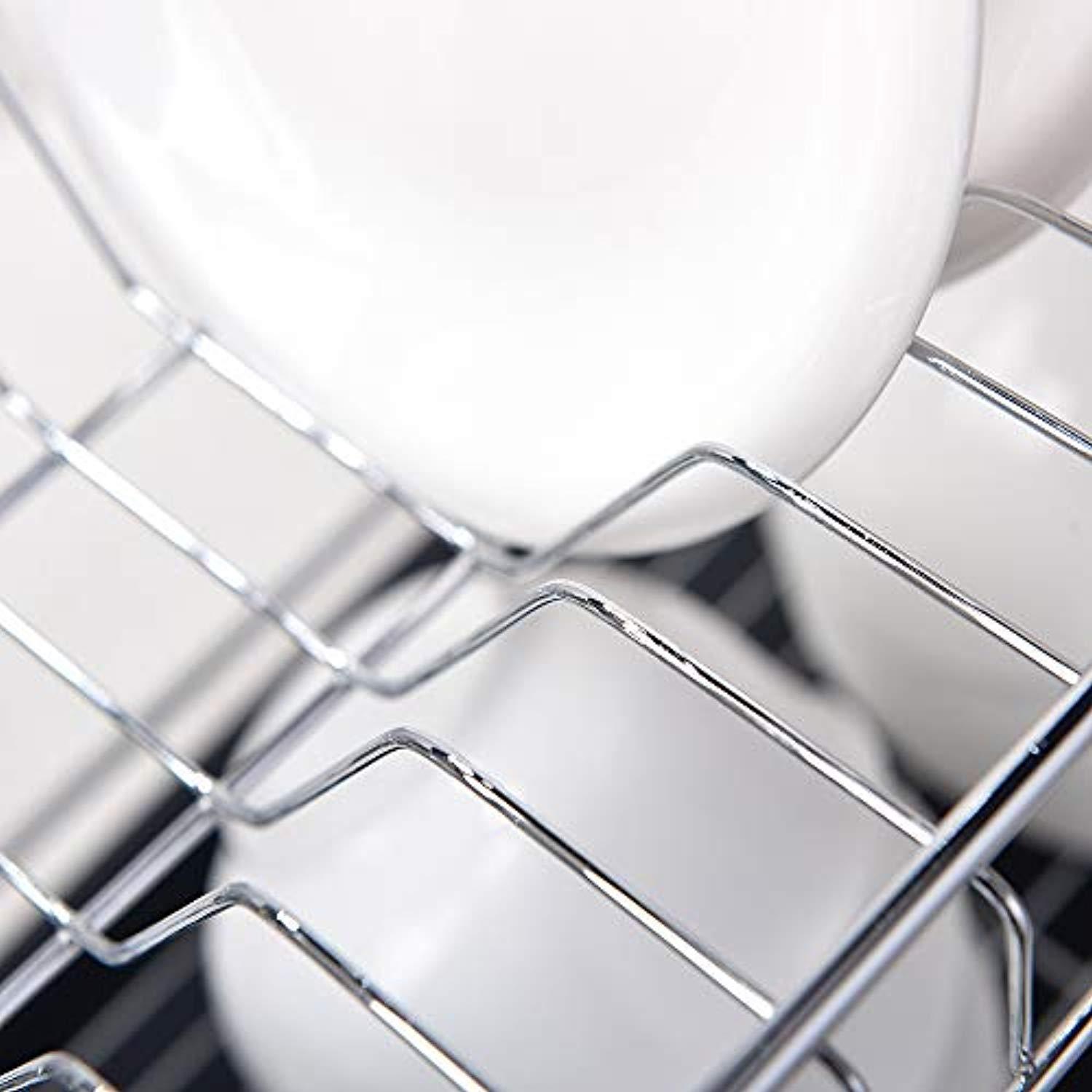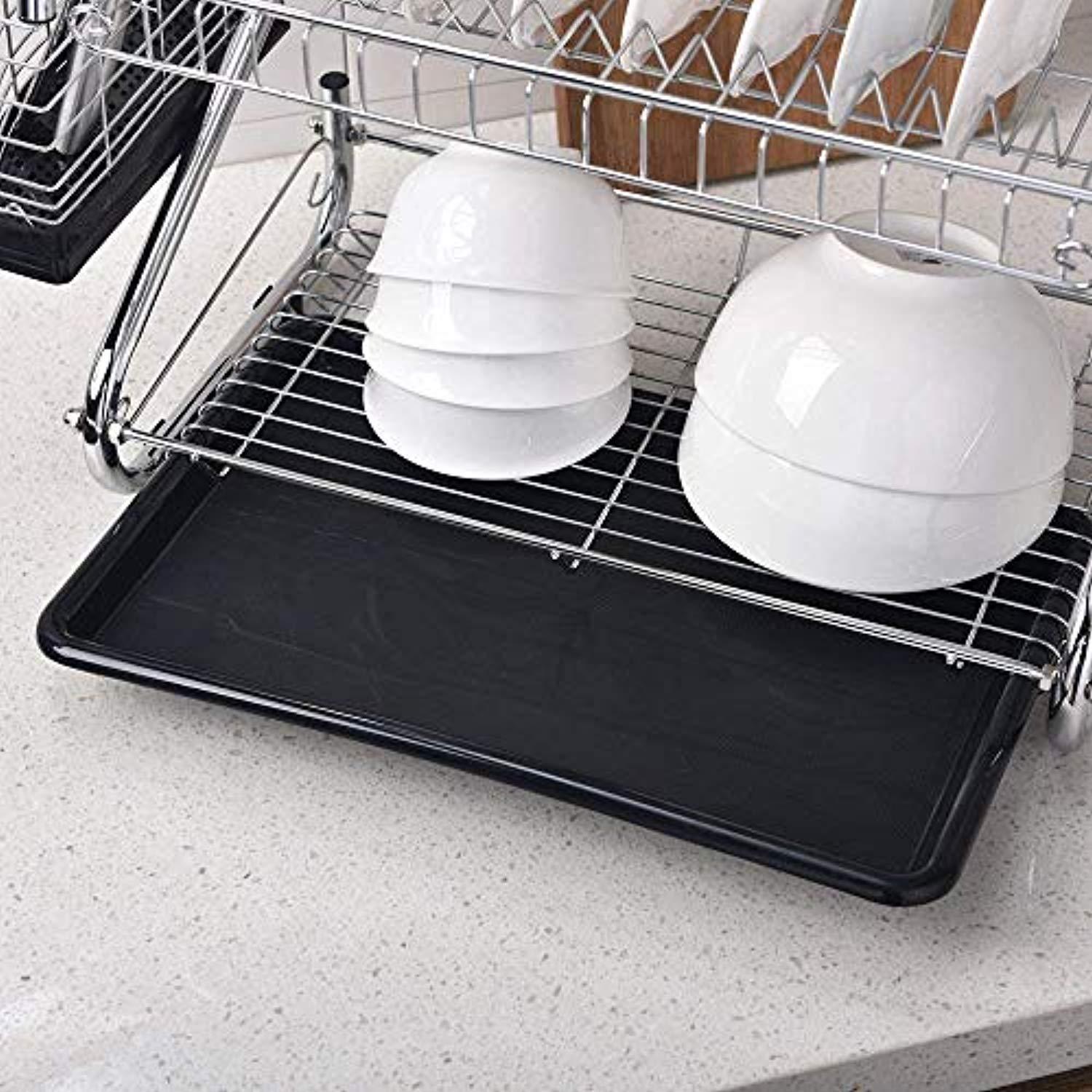 Long Service Life: Strong steel wire, durable and rust proof. Includes a plastic pan to catch the excess water, as well as a side compartment for all utensils and cutlery 1 year warranty and 30 days money back guarantee