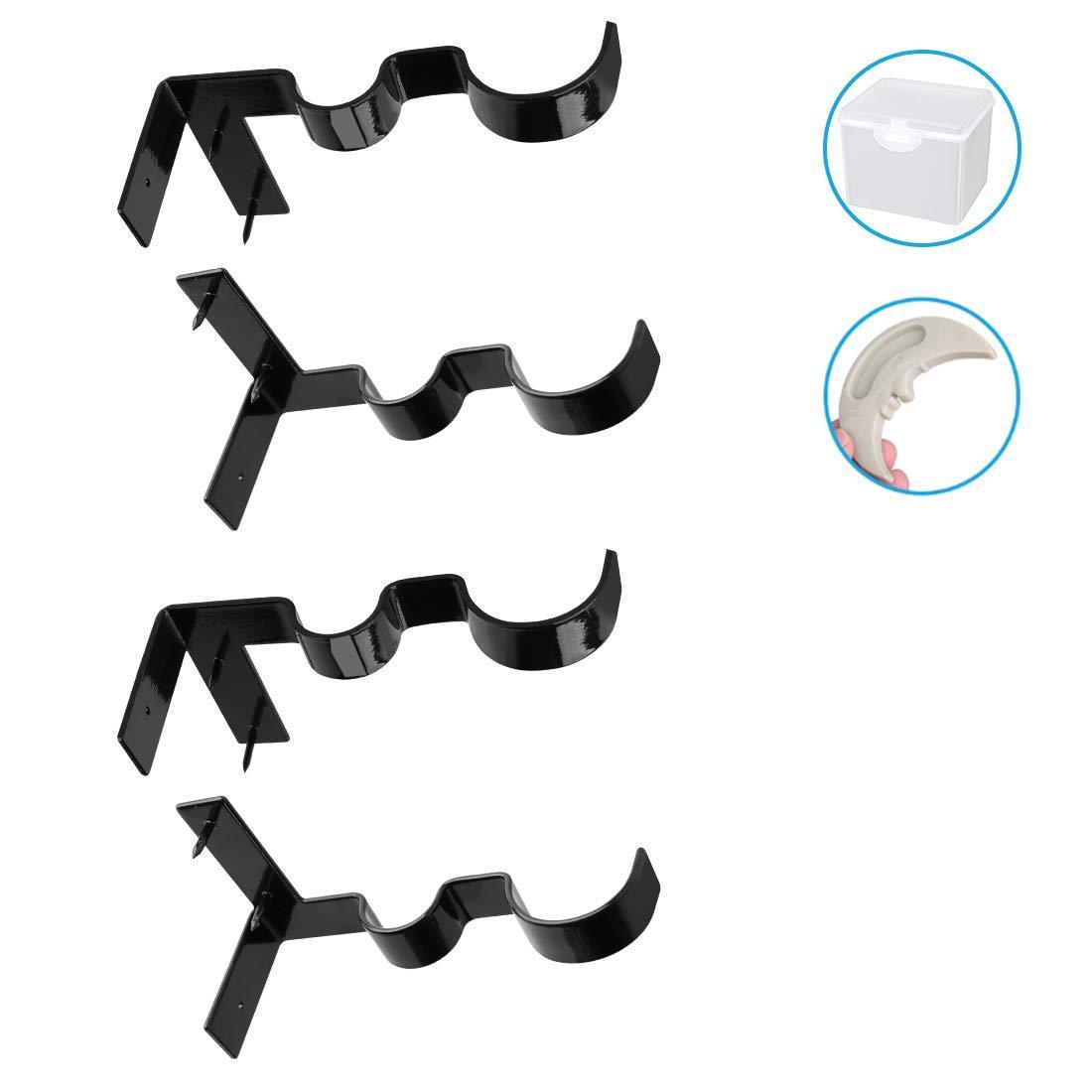 Yoaokiy 2Pair Curtain Rod Holders - Double Curtain Rod Brackets Tap Right Into Window Frame - Adjustable Curtain Rod Brackets(Black)