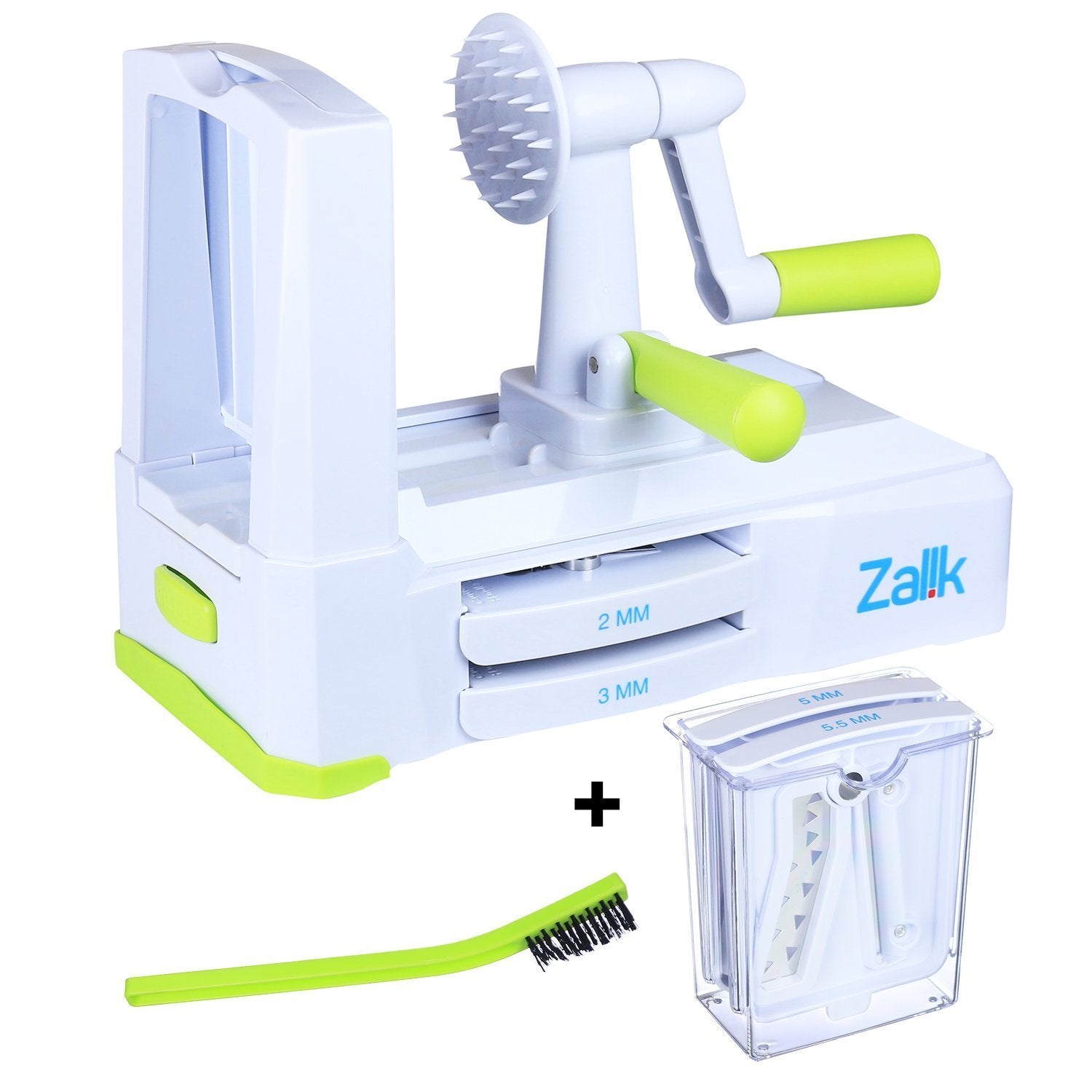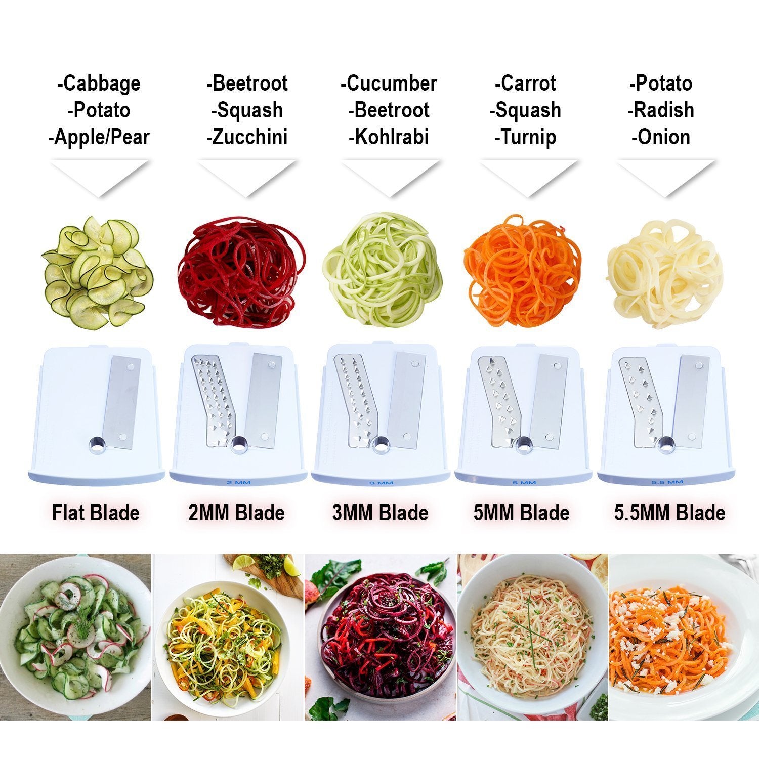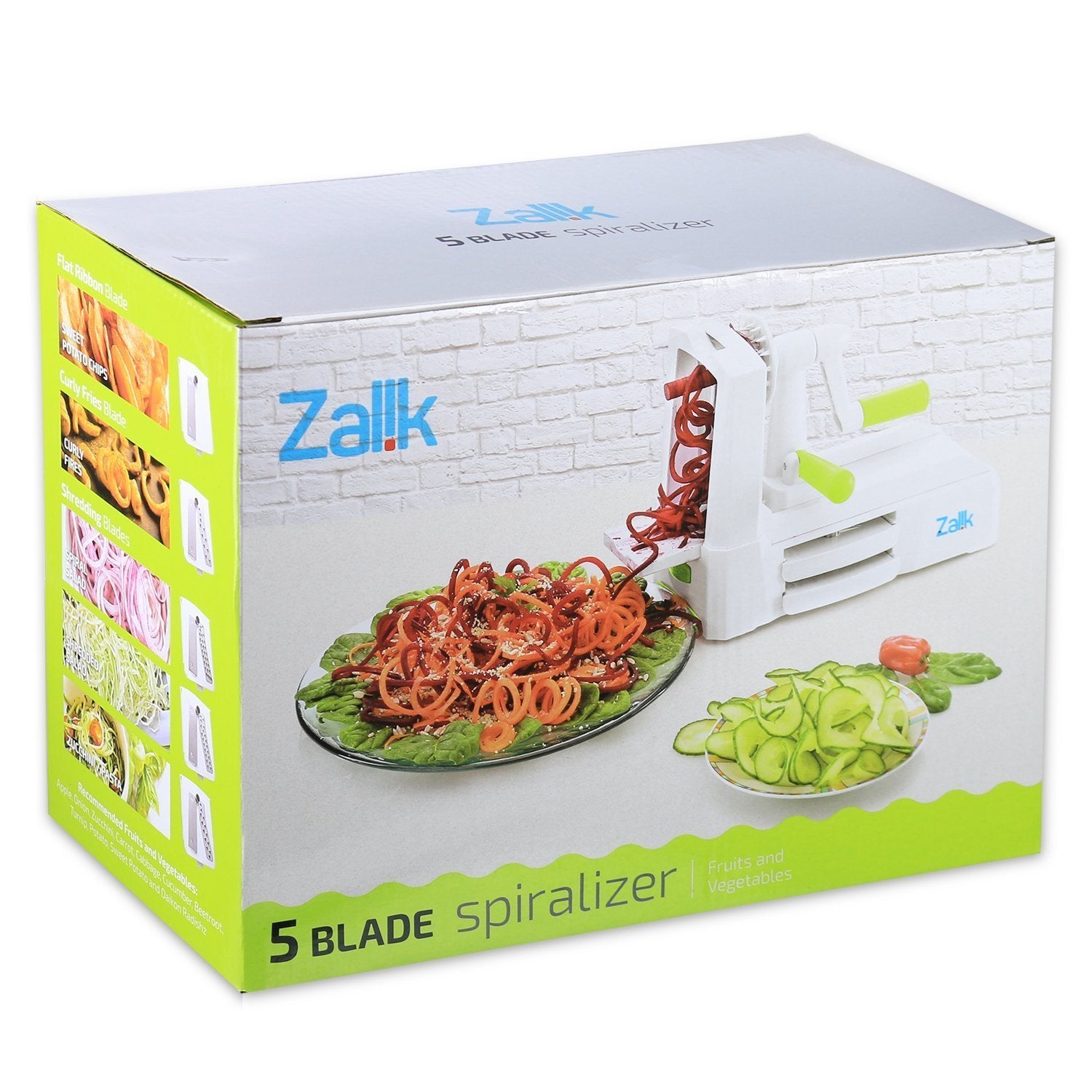 Zalik 5-Blade Spiralizer - Vegetable Spiral Slicer With Powerful Suction Base - Strong & Heavy Duty Veggie Pasta Spaghetti Maker for Low Carb/Paleo/Gluten-Free Meals With Extra Blade Storage Caddy