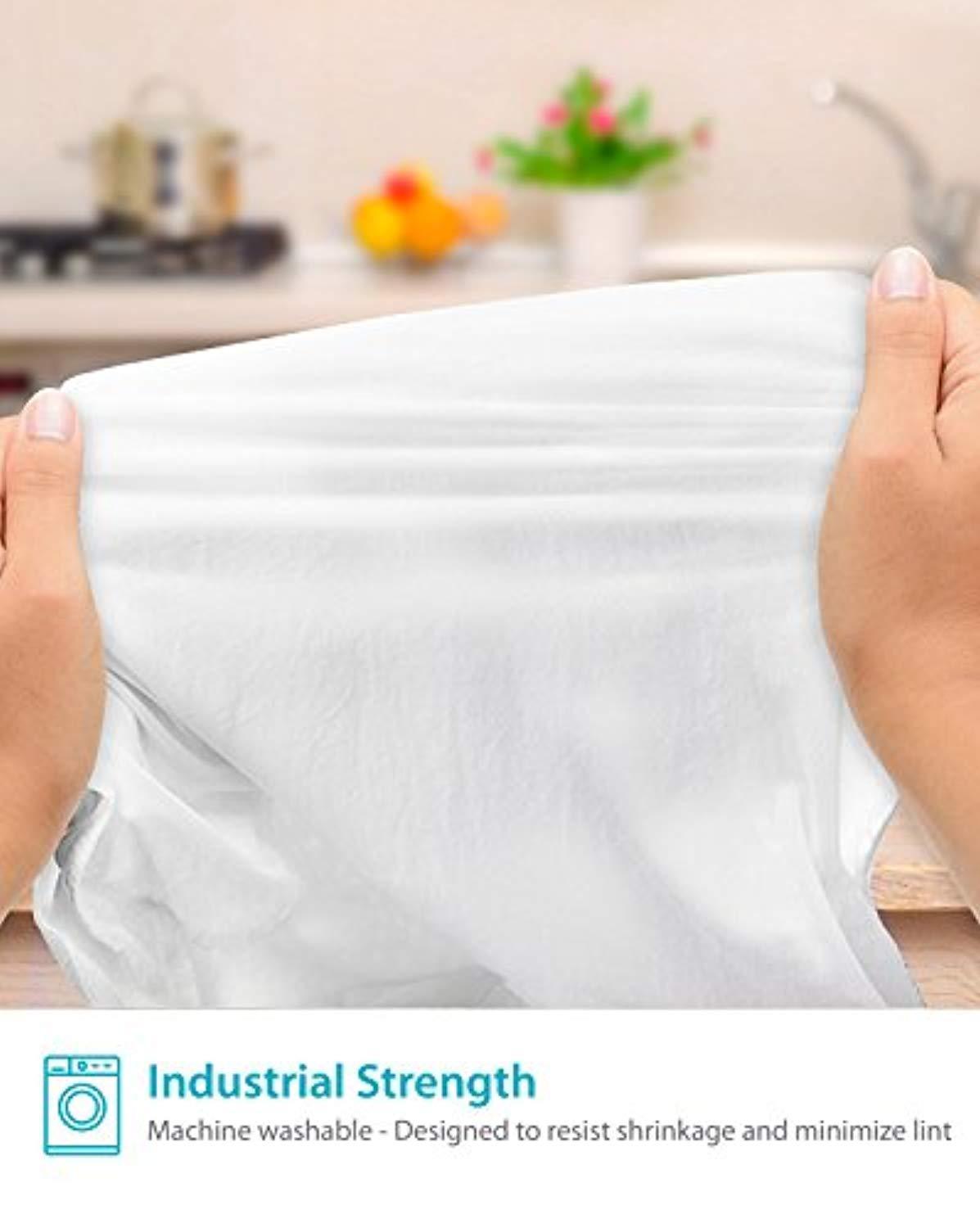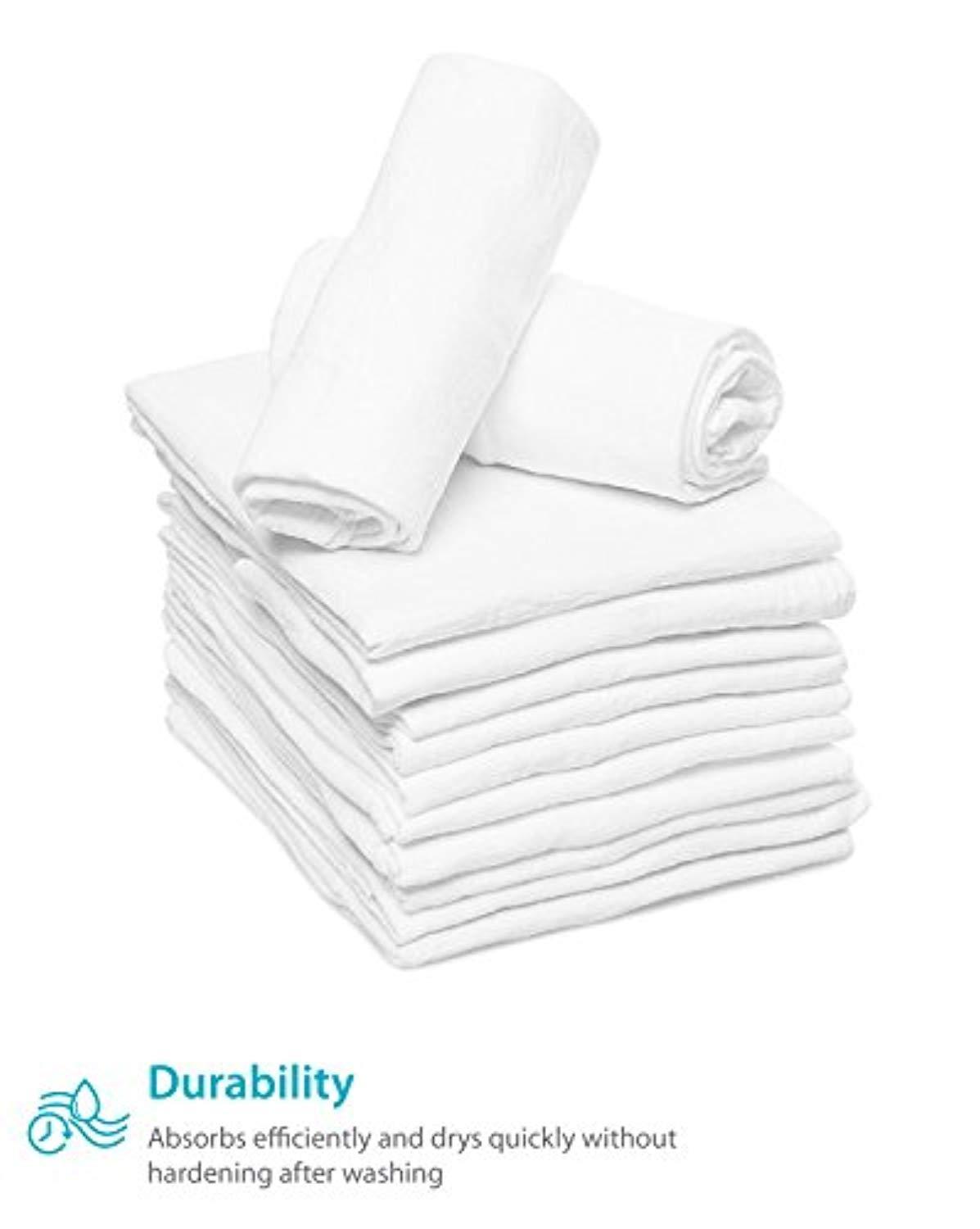 ENVIRONMENTALLY FRIENDLY; Made of white 100% ring-spun cotton, these natural flour sack towels are perfect for cooking or baking and can safely be used around food such as covering dough for rising or as a food strainer MULTIPURPOSE AND VERSATILE; These hardworking towels are great in both your home or business; Use for drying, wiping, cleaning, or dusting; Fun for crafting projects such as needlepoint; Can double as everyday cloth napkins – the uses are endless STURDY AND LONGLASTING; Flour sack towels are sturdy, highly absorbent, dry quickly, and are designed to stand up to most any cleaning job; Set of 12 provides plenty of towels to handle all your household cleaning needs HIGH QUALITY; These towels have strong machine stitched edges, measure 31 x 31, and designed to resist shrinking and shedding lint. For maximum results, wash towels before initial use to improve absorbency and minimize lint EASY CARE AND SAVES YOU MONEY; Machine washable towels easily withstand frequent washings and are made for repeated daily use; Reusable cotton flour sack towels enable you to go paperless and helps you reduce your dependence on paper products