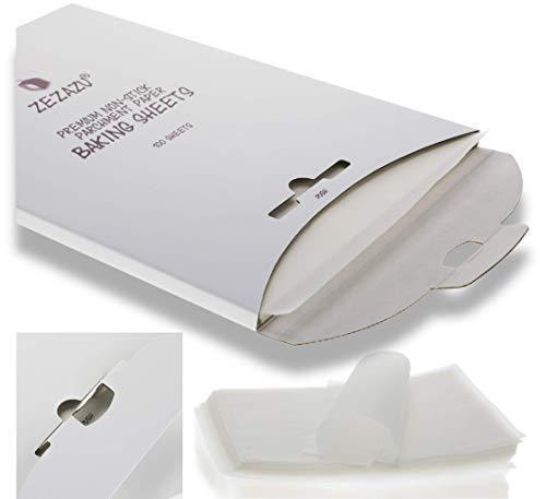 ZeZaZu Parchment Paper Sheets for Baking - MADE IN EUROPE - Precut 12x16 inch (100 Sheets) -RECLOSABLE PACK- Exact Fit for Half-Sheet Baking Pans, Unbleached, Non-stick, Dual-Sided Siliconized Coating