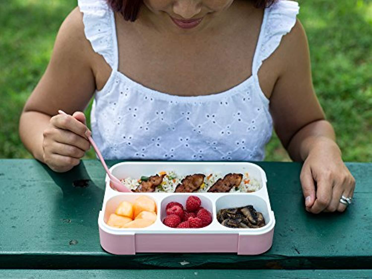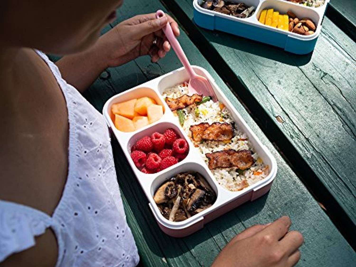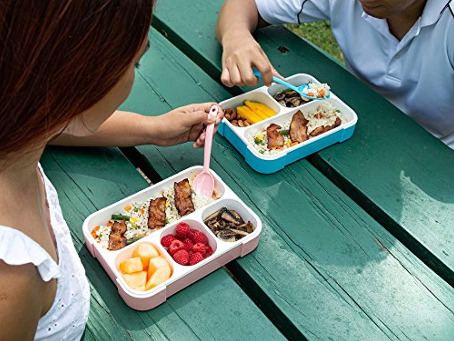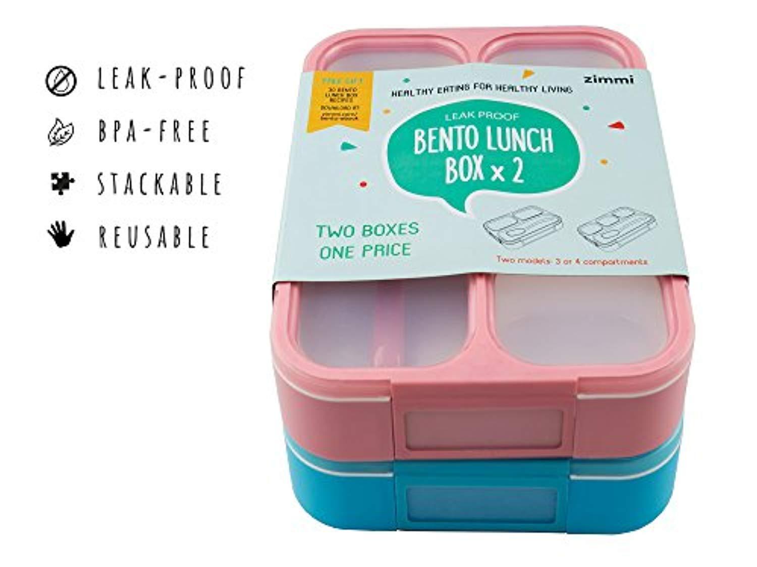 ✅ CUTE BENTO BOXES SET FOR MINDFUL EATING - A beautiful set of 2 Bento lunch boxes ready to keep meals, lunches, snacks fresher, tastier, smartly dived into 3 or 4 compartments – your choice! You and your family can eat healthy anytime, anywhere. ✅ EXTREMELY SAFE & ECO FRIENDLY - Zimmi insulated lunch boxes for kids are 100% food safe. The premium quality materials are BPA free. No harmful chemicals, smells or odors will spoil your delicious treats, which will taste freshly cooked. YUMMY! ✅ ALWAYS READY TO GO - Perfectly Sized AT 6.7 x 9 inches with 32 oz capacity, the slim lunch box design fits into any purse, backpack or briefcase. It’s a perfect snack box, preschool lunch box, school food box for children or an efficient nutrition portion control containers kit. ✅ SPECIAL GIFTS INCLUDED - For every ZIMMI Lunch Box set of 2 x bento box for kids you receive a BONUS GIFT E-BOOK "30 Bento Lunch Box Recipes” PLUS 2 plastic spoons – pink and blue – so you can pack, store, prepare and eat fun YET healthy nutritious meals at your own pace, anywhere (school, office, backpacking). ✅ 100% MONEY BACK GUARANTEE - This lunch kit is your new risk free purchase. In case you’re not completely satisfied with it, ask for a refund. Why not buy a set of 2 reusable lunch containers for you and one for your loved ones? Spread the gift of fun & healthy food on-the-go!