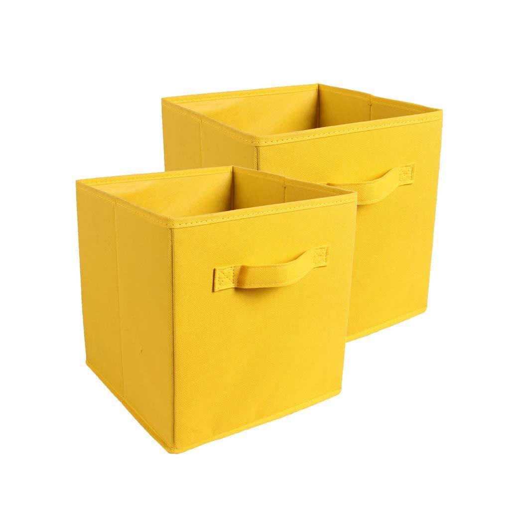 Zuer Foldable Storage Cubes- Thickening Collapsible Fabric Boxes Household Cube Storage Box - Moistureproof, Dustproof, Odourless (2 Pack) (Yellow)